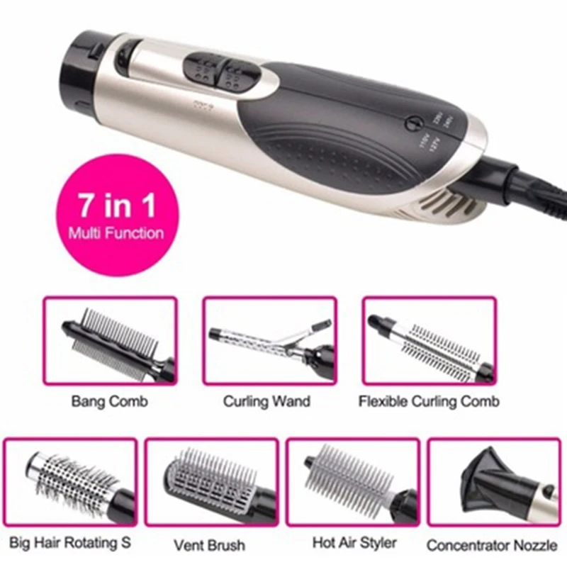 EU Plug 7 в 1 многофункциональная профессиональная отрицательная ионная фен для волос с расческой, набор для завивки волос, прямые волосы с 7 Att