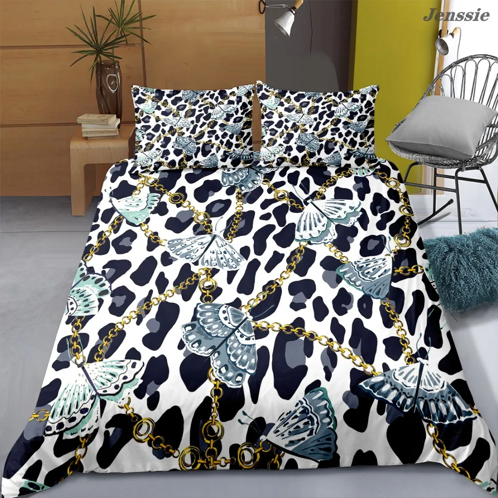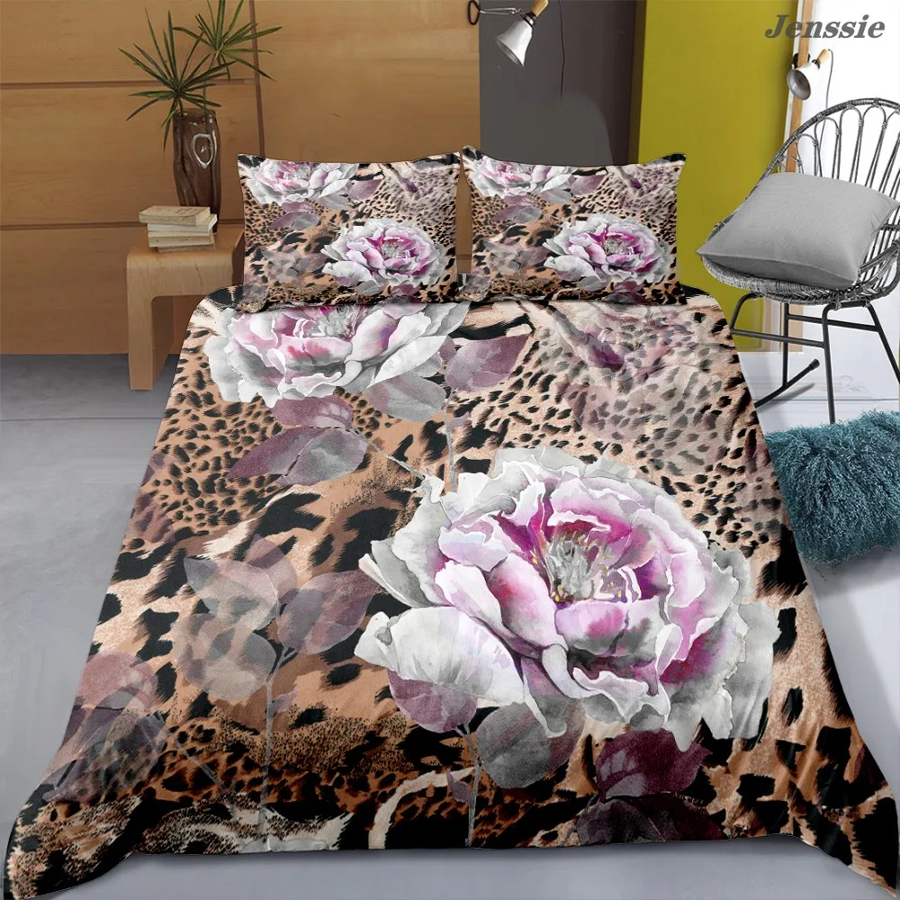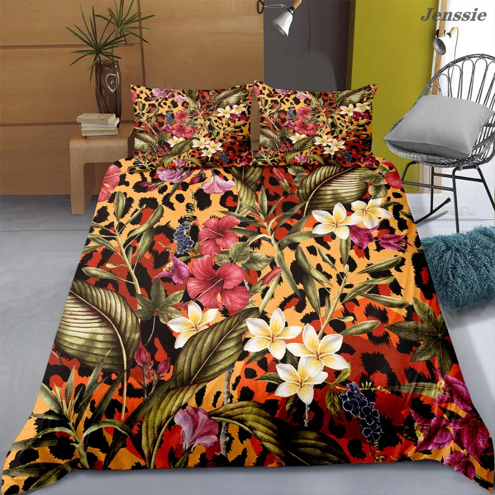 Леопардовый цветочный пододеяльник, одиночный двойной комплект постельного белья, взрослые покрывала, роскошное 3D цифровое печатное цветочное одеяло с банановым листом