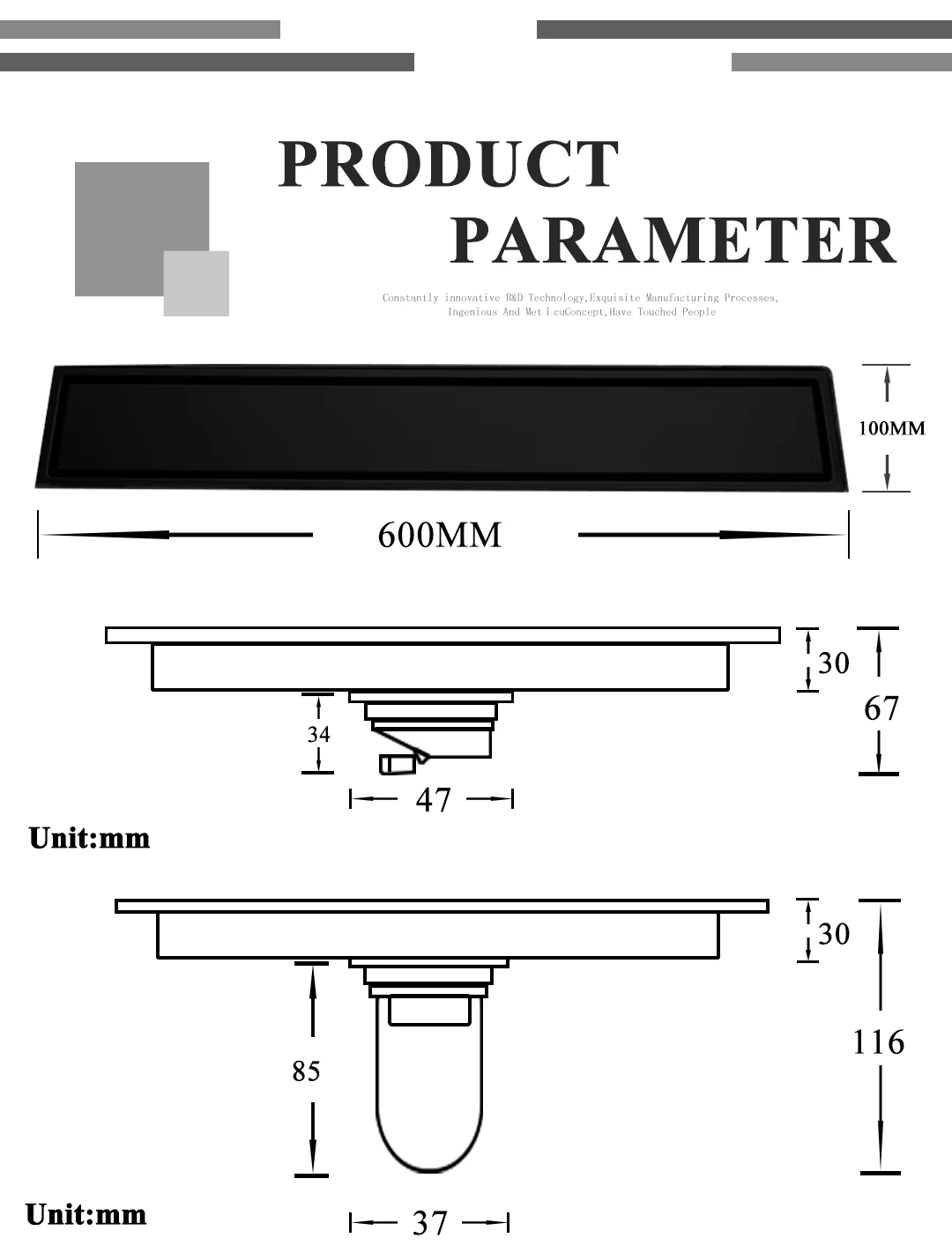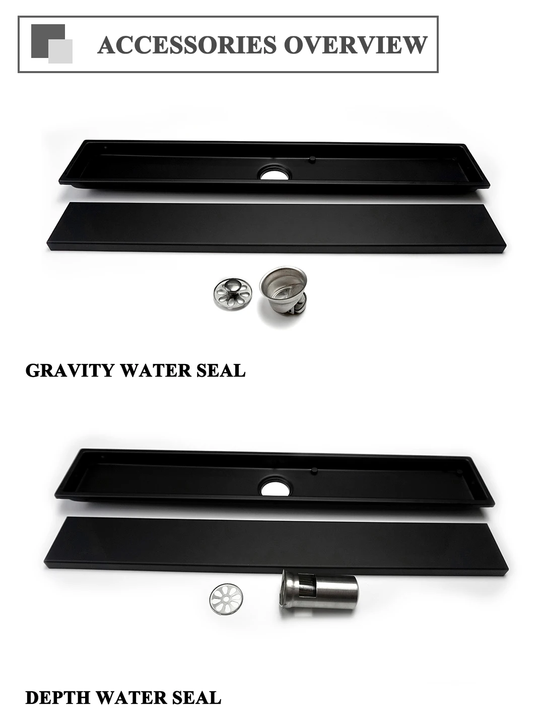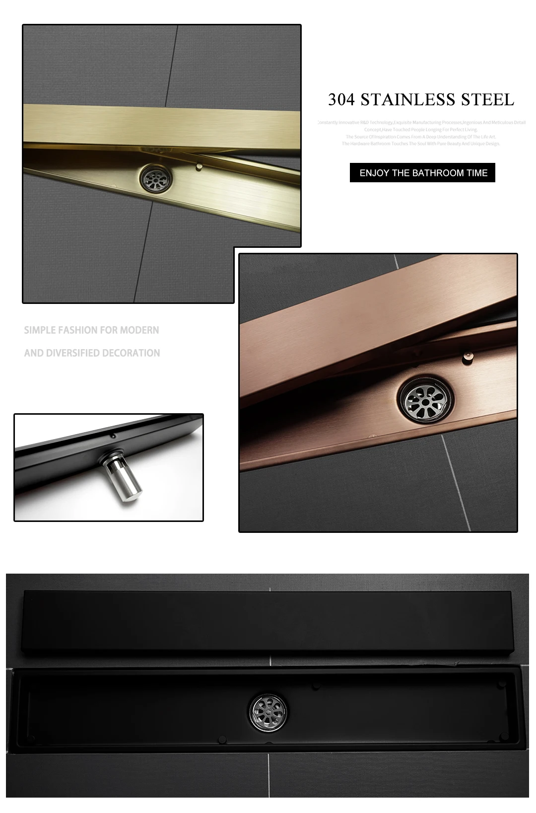 Shower Drain 304 Stainless Steel Shower Floor Drain Long Linear Drainage Drain for Home and Hotel Bathroom Kitchen Floor Black Brushed Gold