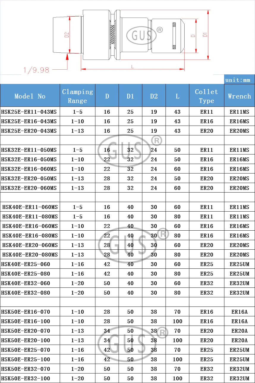 Характеристики продукта: HSK25E HSK32E HSK40E HSK50E