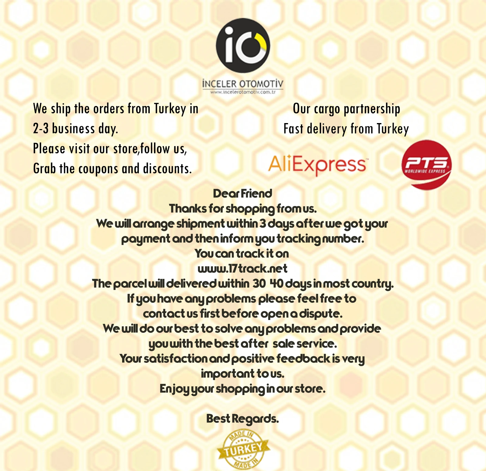 Ваши заказы отправляются не позднее 2 дней.