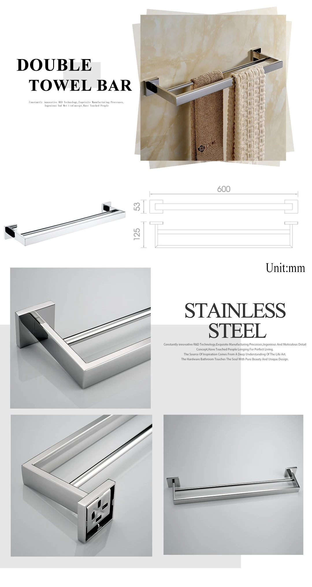 Chrome Polished Double Towel Bars Bathroom Towel Hanger Rack Stainless Steel Bathroom Accessories Soap Dish Toilet Brush Holder