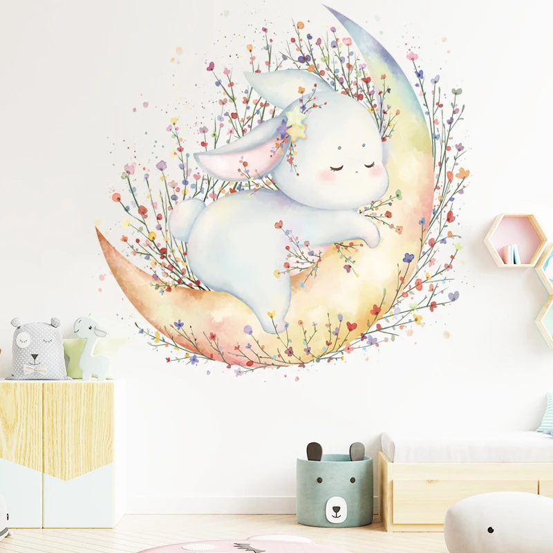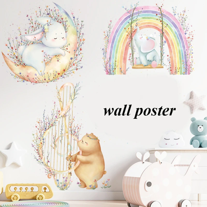 Наклейки на стену с изображением животных, ПВХ материал, водонепроницаемый и противообрастающий. Есть различные стили печати медведя, кролика и слона, все из которых очень милые.