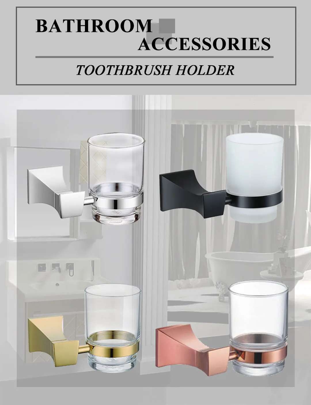 Держатель для зубных щеток со стеклянной чашкой, держатель для Teethbrush, розовое золото, черный хром, стакан и подстаканник, настенные аксессуары для ванной комнаты