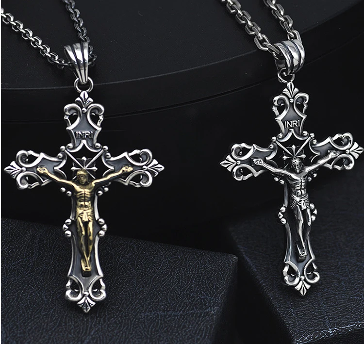 Подвеска с крестом FNJ Jesus, серебро 925 пробы, оригинальные подвески из чистого серебра S925 для изготовления ювелирных изделий для женщин и мужчин, изящный Христос