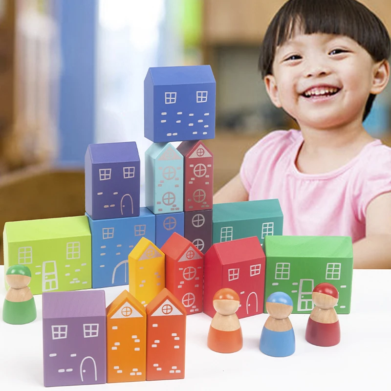 【Блок Party】-краска время воспроизведения с удивлением и волнением! Откройте воображение вашего малыша с вашим радужным штабелером, играющим в набор из игрушек Giggles Montessori!