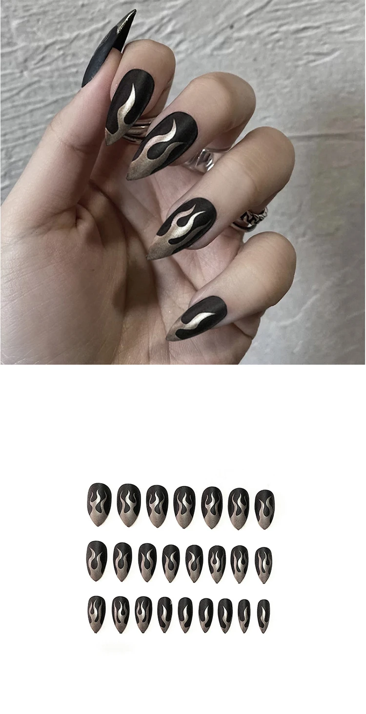 24 шт., французские искусственные ногти с клеем, искусственные ногти с пламенем, пресс для ногтей, инструменты для маникюра, сделай сам, классные девушки