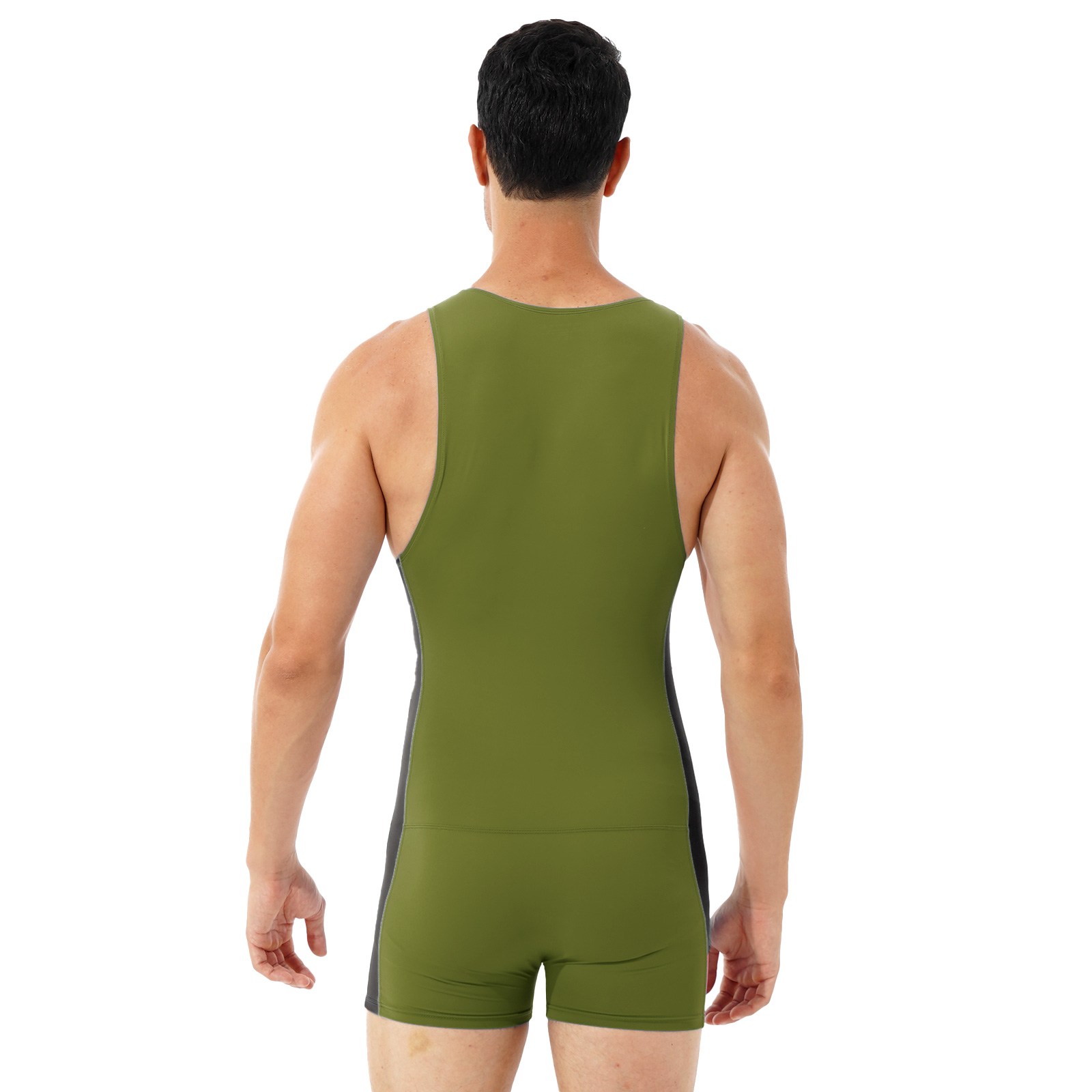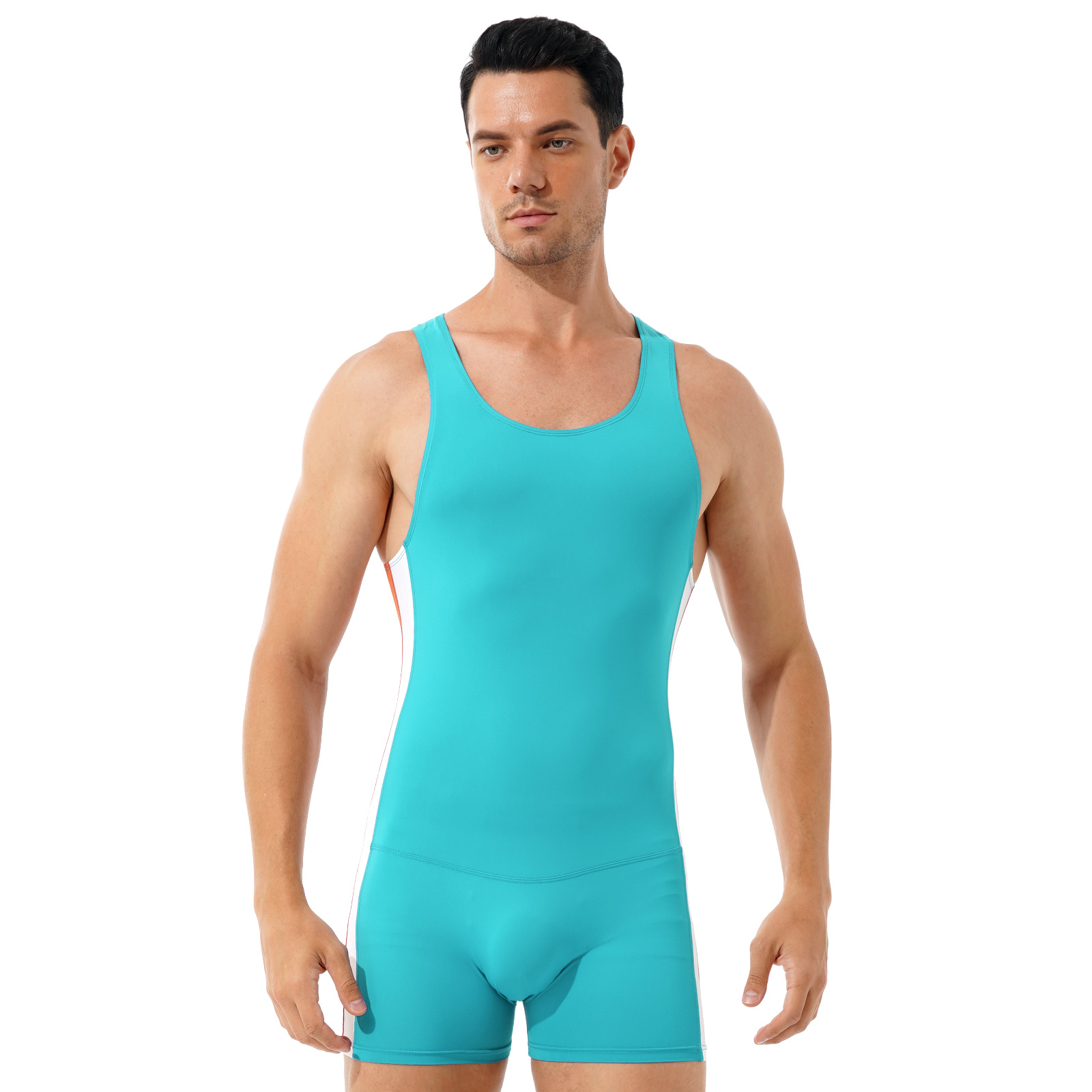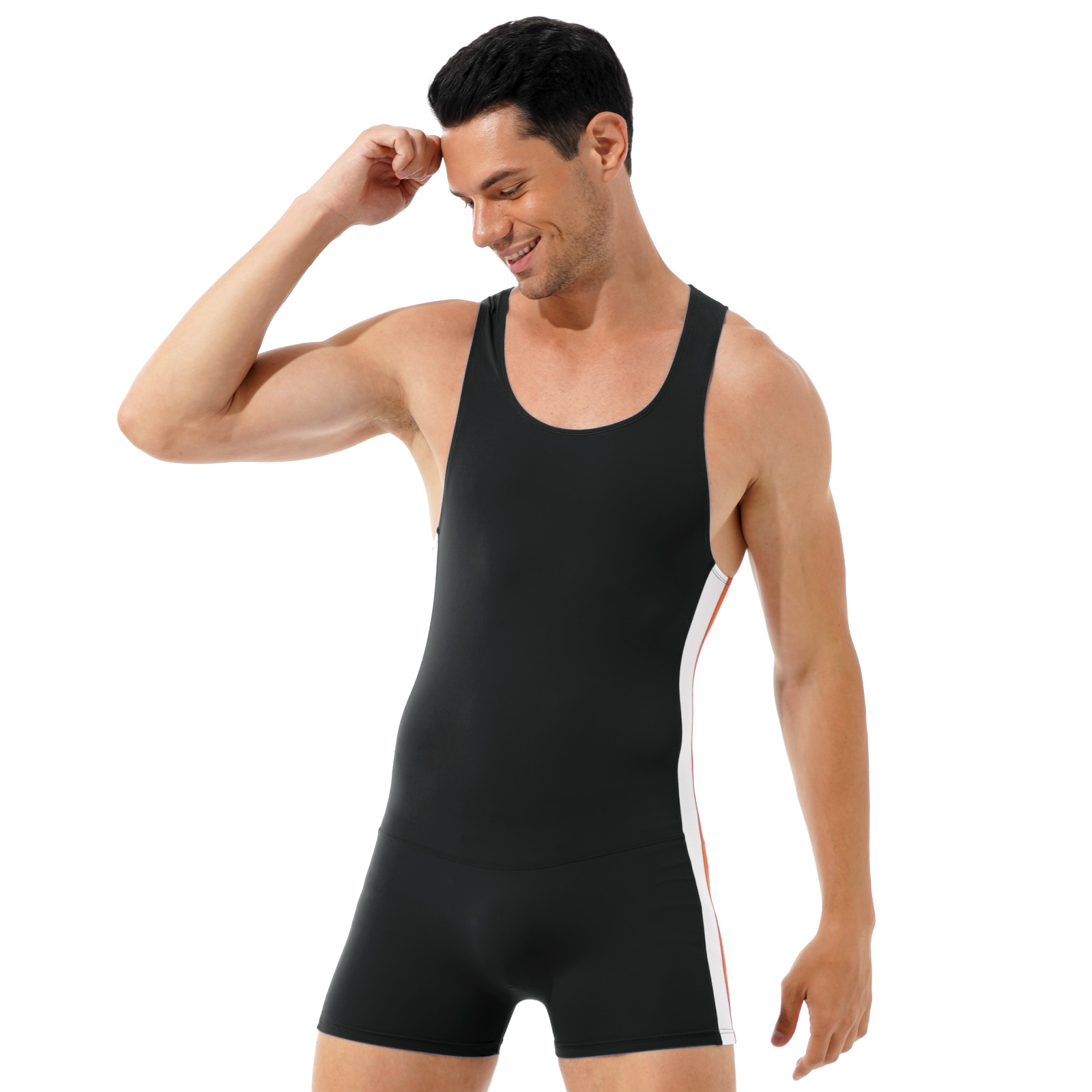 Мужской спортивный Облегающий комбинезон в контрастную полоску с круглым вырезом без рукавов.