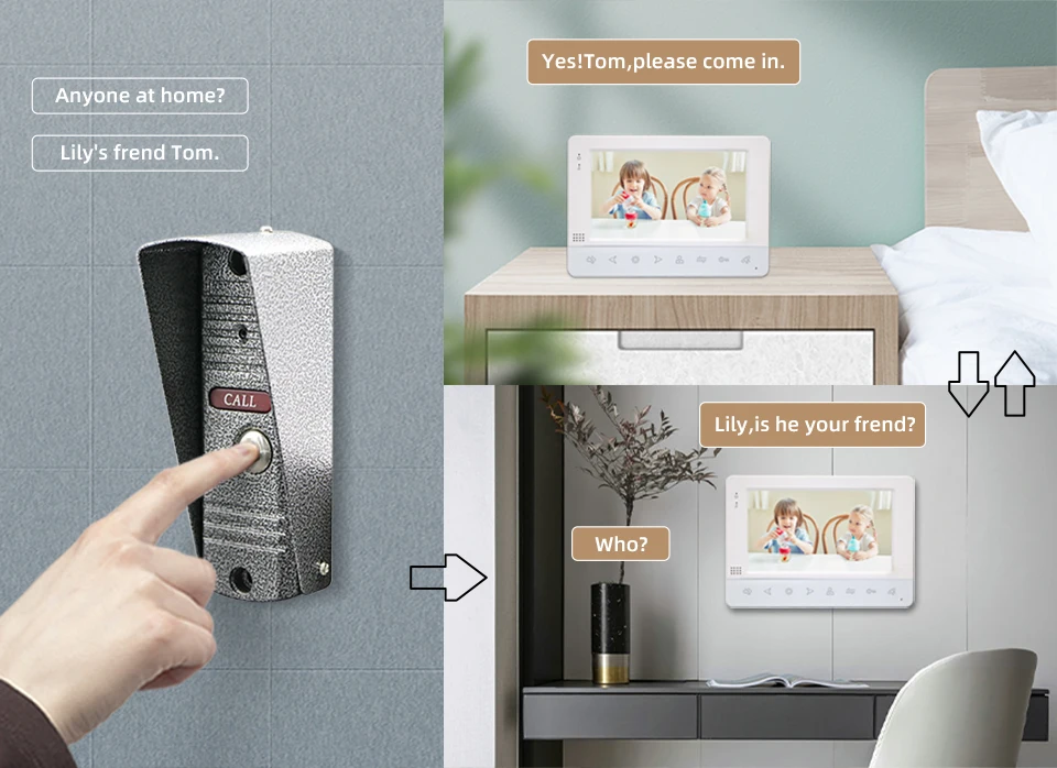 Вы можете не только вести видеодомофон с гостями, но и легко общаться между комнатными помещениями в разных комнатах и разных этажах, что делает общение проще и удобнее