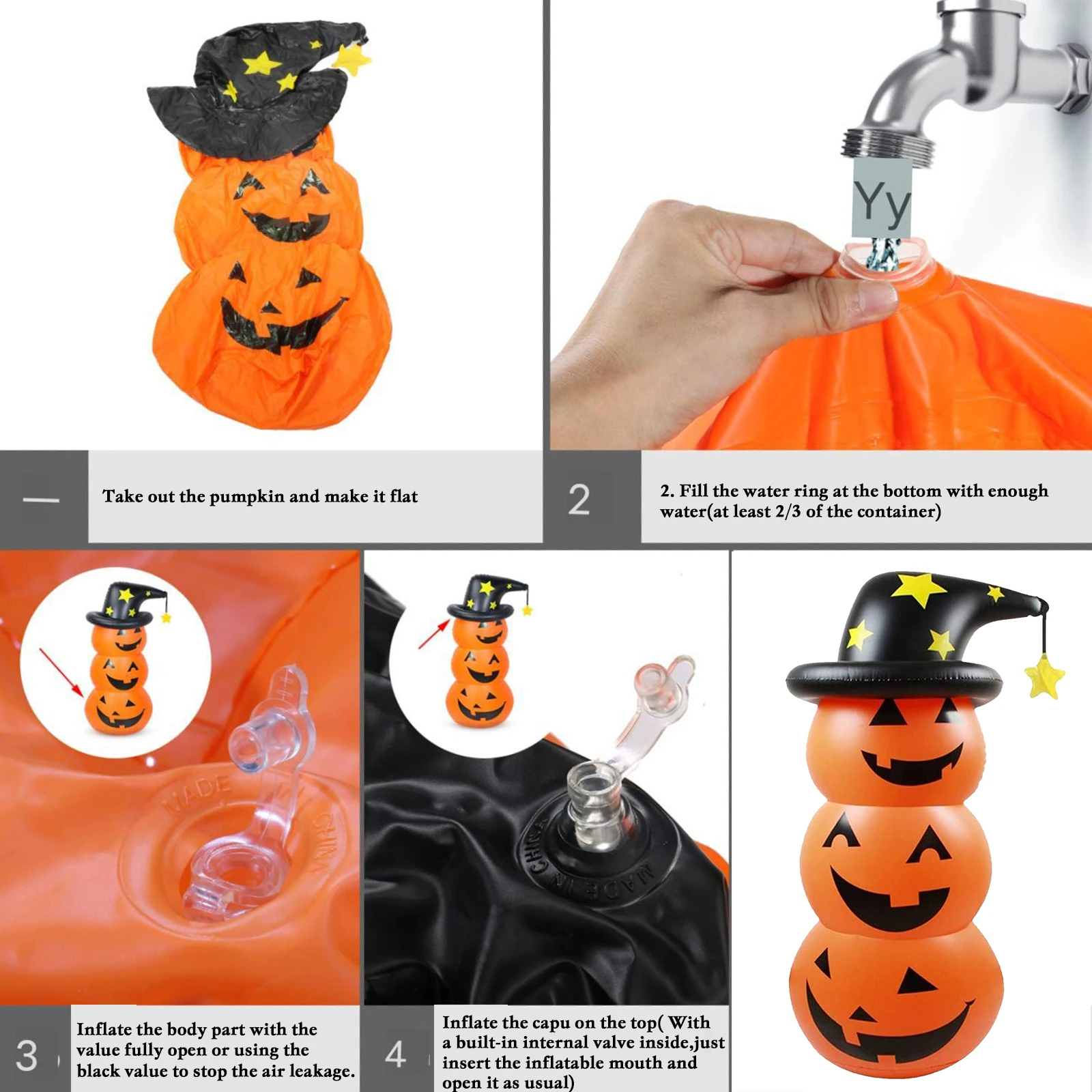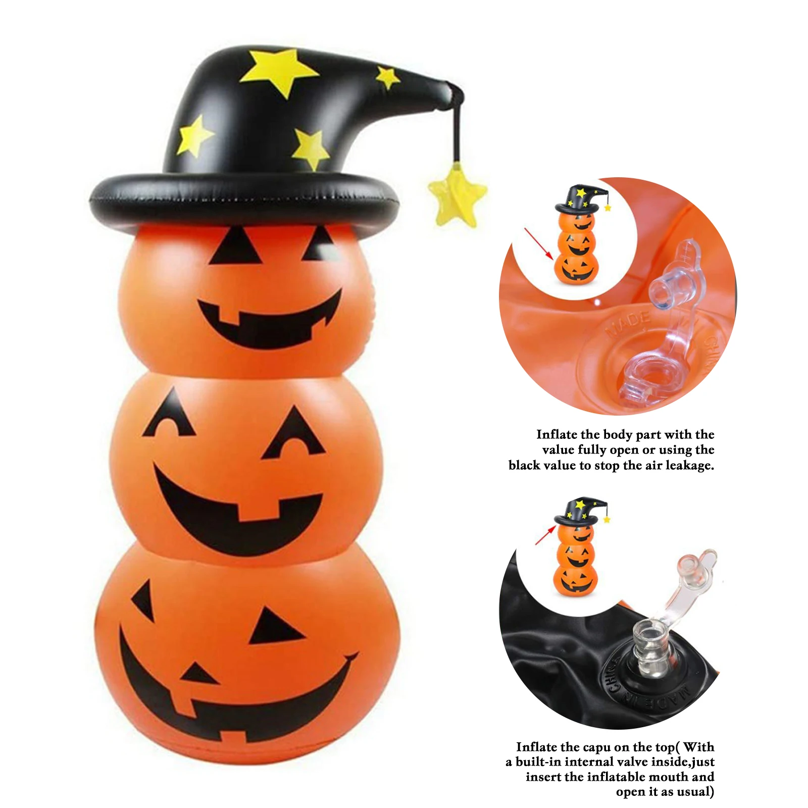 Надувной тумблер тыквы, 4.6фт Хэллоуин 3 Pumpinks сложенный и ведьма шляпа выдувания декор для внутреннего наружного двора вечерние украшения