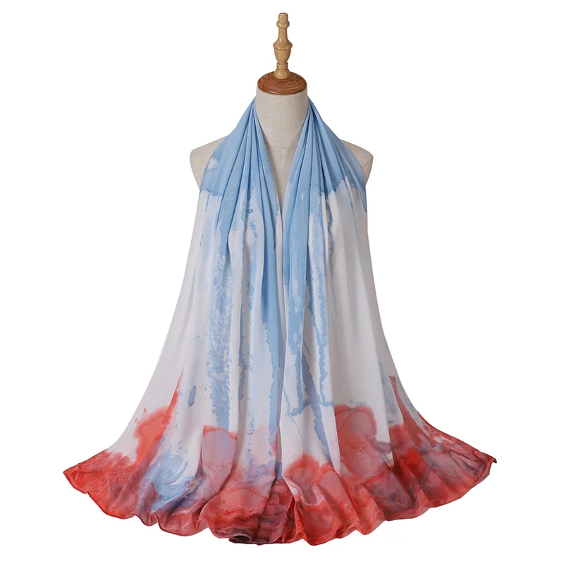 175*70 см, модный шифоновый хиджаб с принтом тай-дай, Женский мусульманский шарф шарфы, популярные шали, Исламская Бандана тюрбан, головной платок