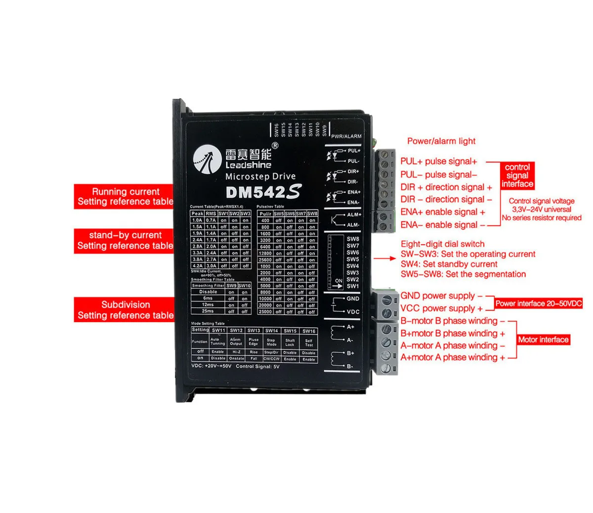 4. Может управляться DM542 DM542S DM542-V3.0 DM556 DM556S DM556-V3.0 DM556-CAN DM556-IO M542C M542 C-24 M556C M556C-24motor драйвер.