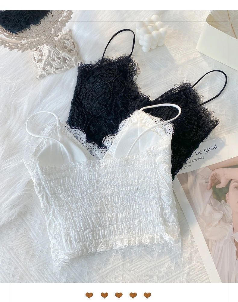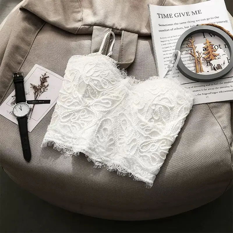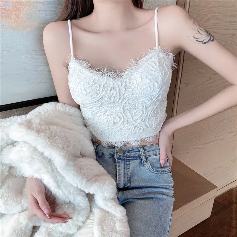 Женские майки, летние, модные, сексуальные, мягкие Топы Ins, элегантные, на тонких бретельках, дышащие, женские, Camis Crop, для отдыха, из чистого кружева, универсальные