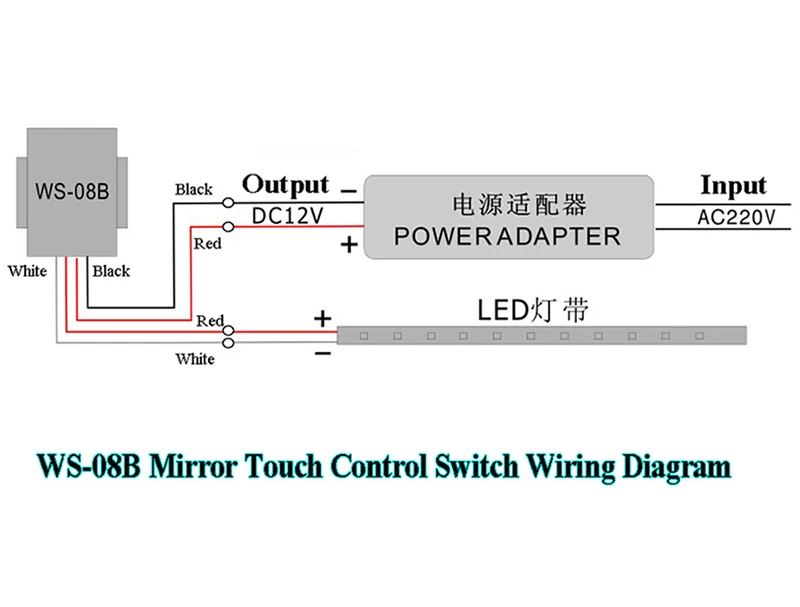 This is a touch control key switch that is suitable for DC 12V power supply, and realizes the switch control function of LED lights, light tubes and high voltage electrical appliances. It is a product designed specifically for bathroom smart light mirrors. The product is reliable, easy to install, sensitive to touch, and has a large output power. It is suitable for control of various mirror lights and other electrical appliances.