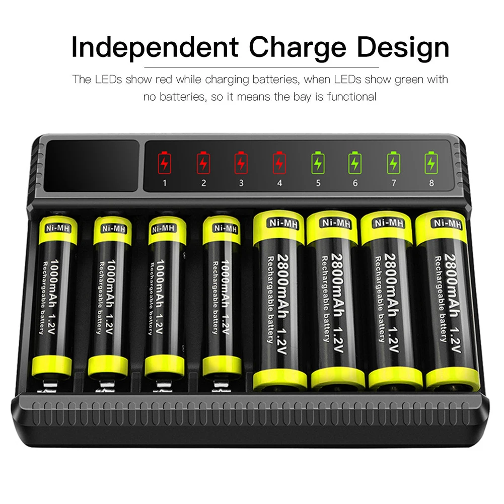 8 слотов умный Батарея Зарядное устройство светодиодный Дисплей для 1,5 V зарядное устройство для никель-кадмиевых или никель-металл-AAA никель-металл-гидридного Перезаряжаемые батареи Intelligent Lithium с Батарея Зарядное устройство
