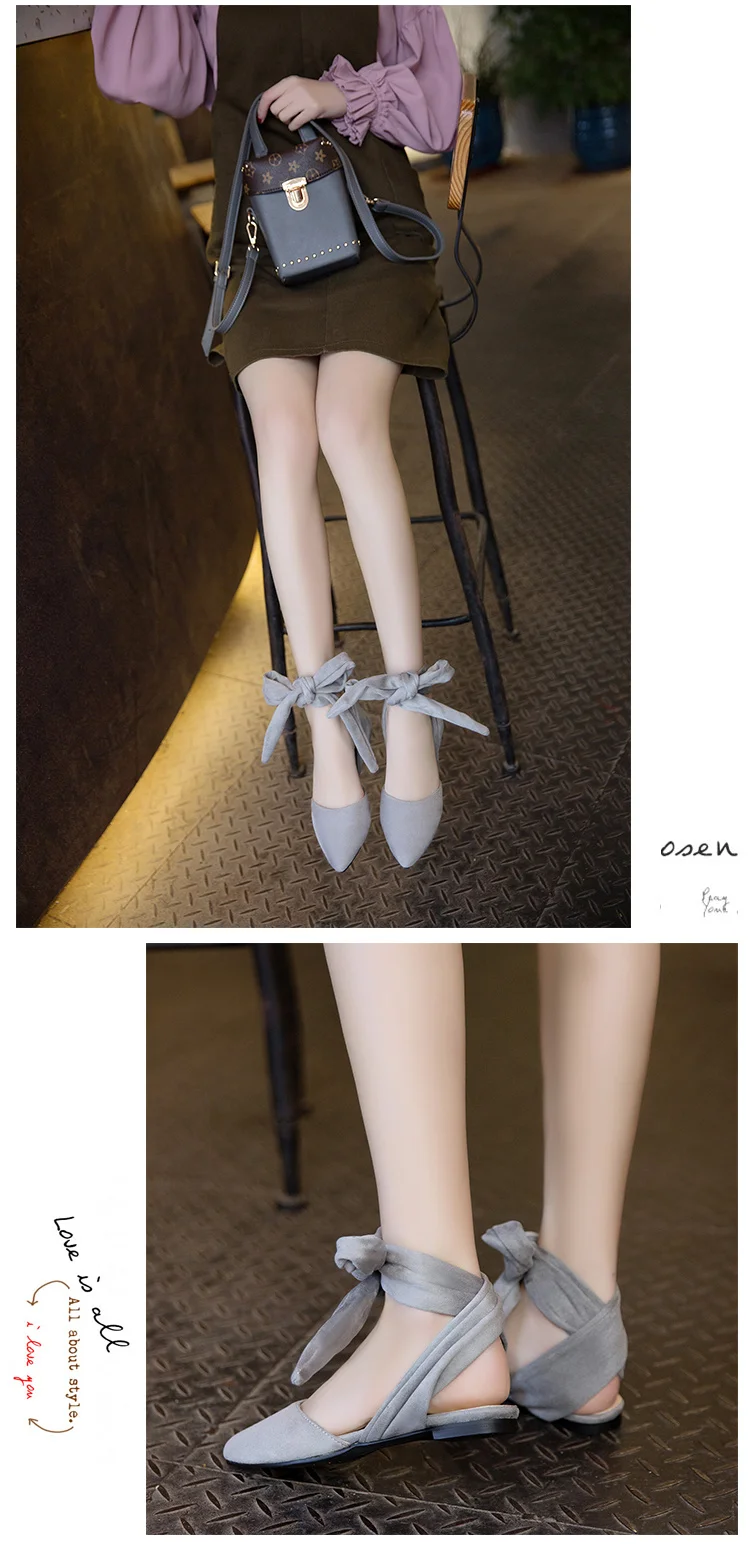 Summer 2021 New Flock Ankle Strap Flat Sandals Women's Fashion Pointed Toe Cross-tied Party Flats Streetwear Shoes For Girls