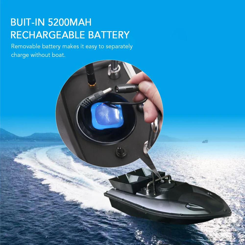 Лодка-приманка питается от buit-in 5200mAh аккумуляторная батарея (входит в комплект).