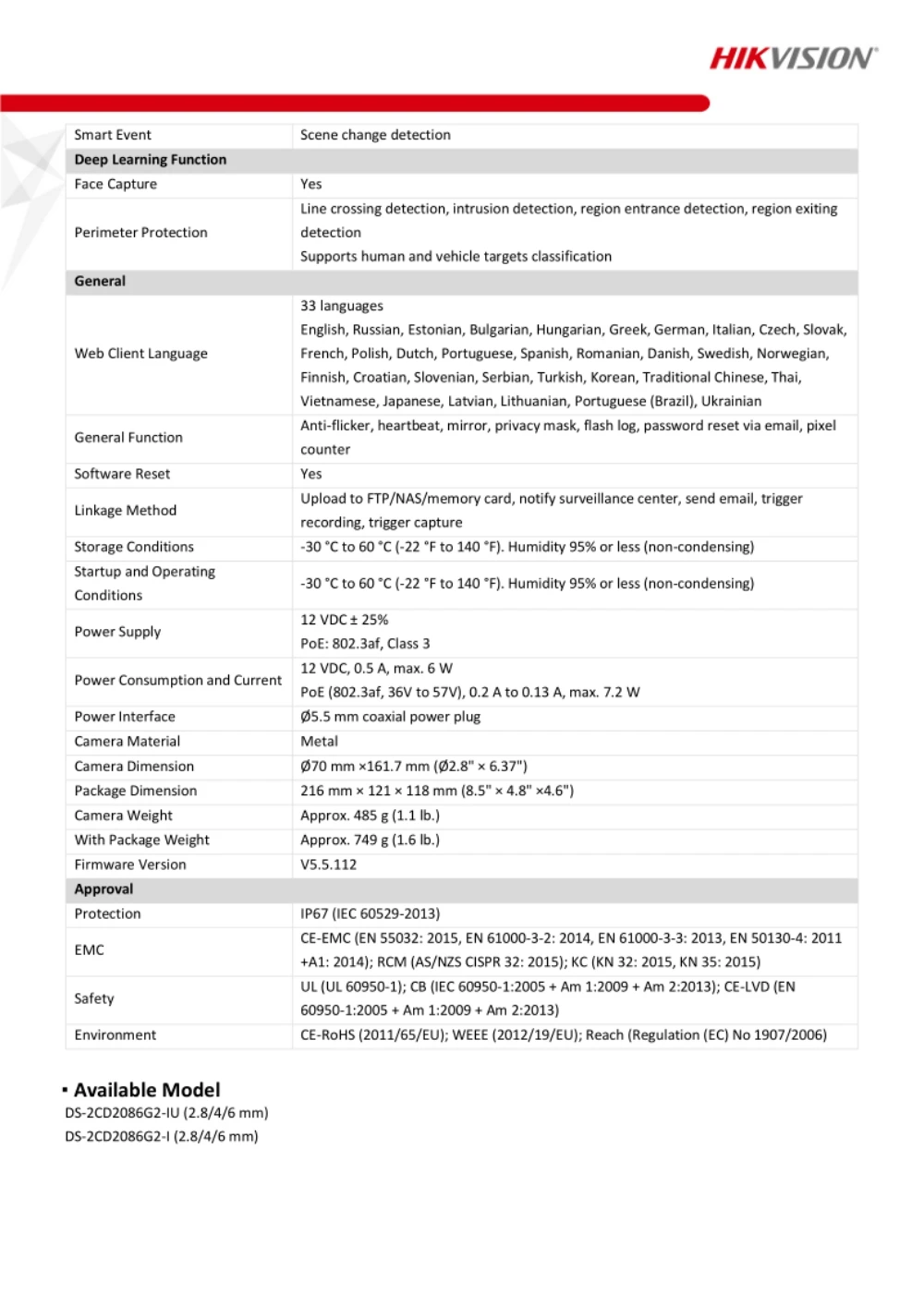 Оригинальная Международная камера Hikvision AcuSense DS-2CD2086G2-I и DS-2CD2086G2-IU 4K POE 8MP IP66 с фиксированной мини-панелью