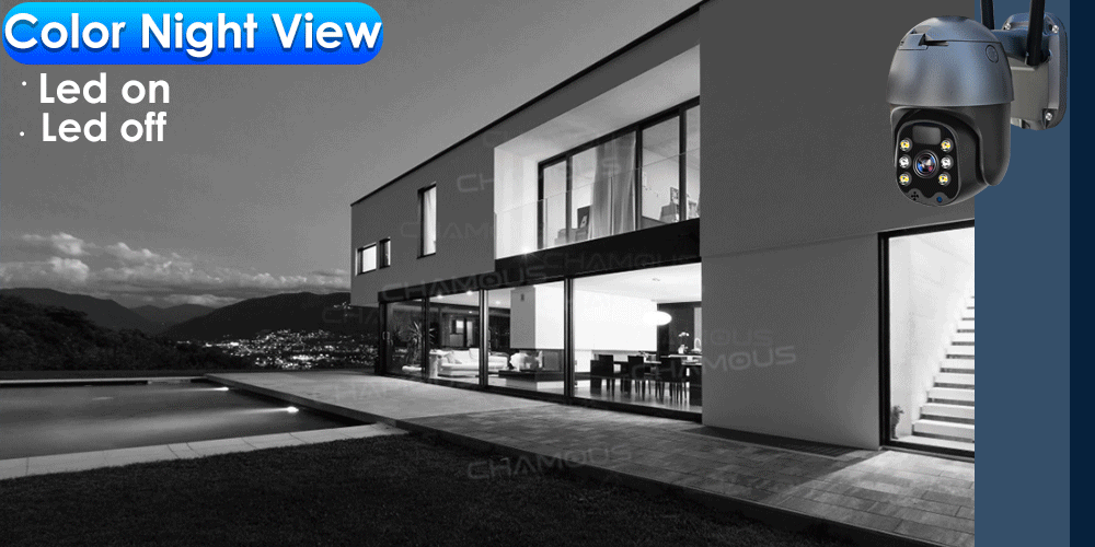 * Эта камера безопасности батареи ptz использует высокочувствительный датчик движения PIR для управления и уменьшения ложных сигналов тревоги,