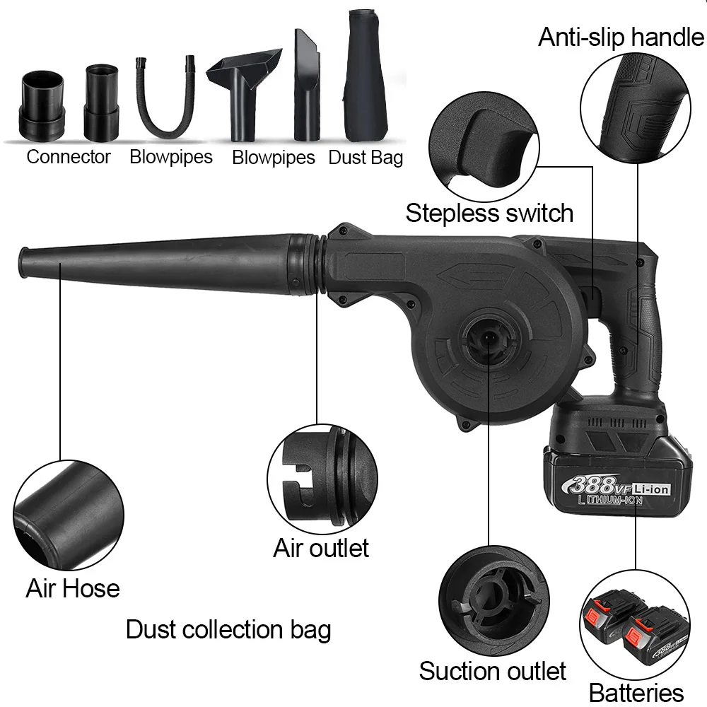 Беспроводной дизайн, эргономичный дизайн и приятная ручка, наш воздуходувка дает вам полную и удобную мобильность.