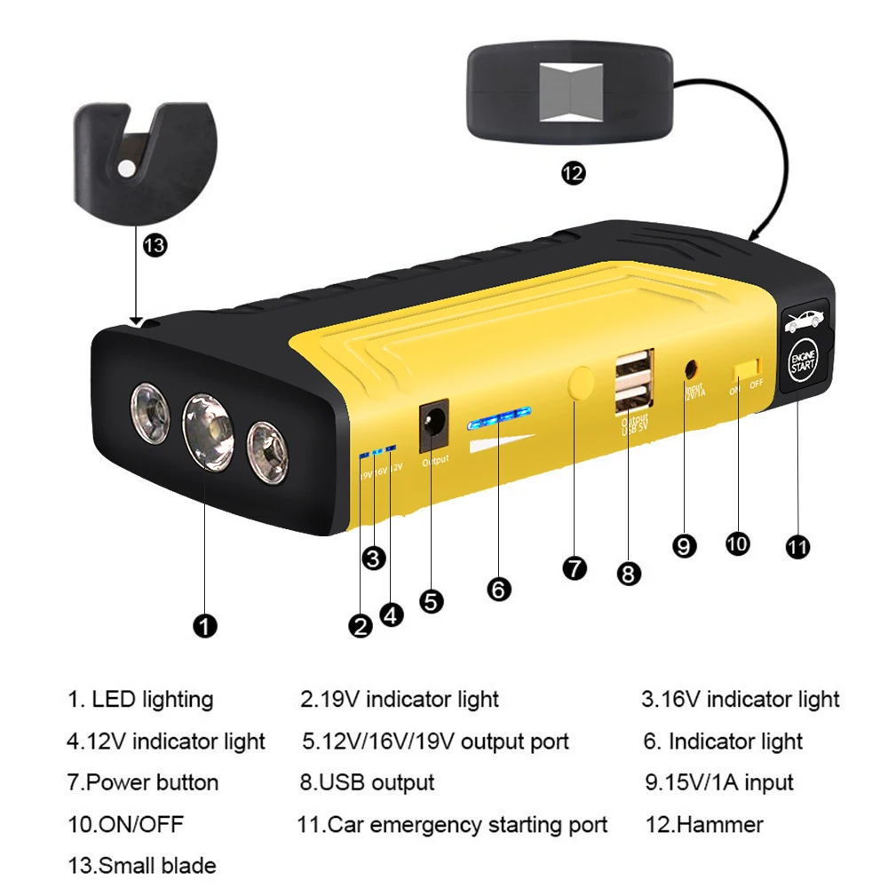 Заработайте батарею 12 В на бензиновом автомобиле и дизельном автомобиле всего за несколько секунд. Когда вы путешествуете в небольшом месте, и ваш автомобильный аккумулятор не работает, вы можете использовать этот автомобильный стартер для запуска вашего автомобиля.