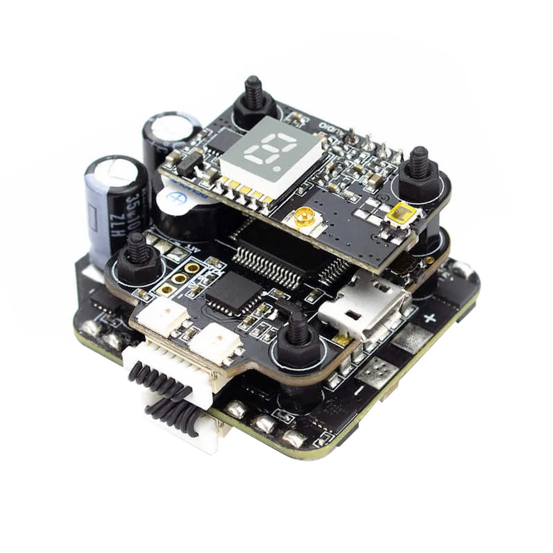 Оснащенная 35amp BLHeli32 плата ESC, Датчик тока, встроенные конденсаторы и возможность работы 2-6s lipo батарей, больше не будет ограничений на возможности стека «все в одном» в этом 20*20 форменном факторе.