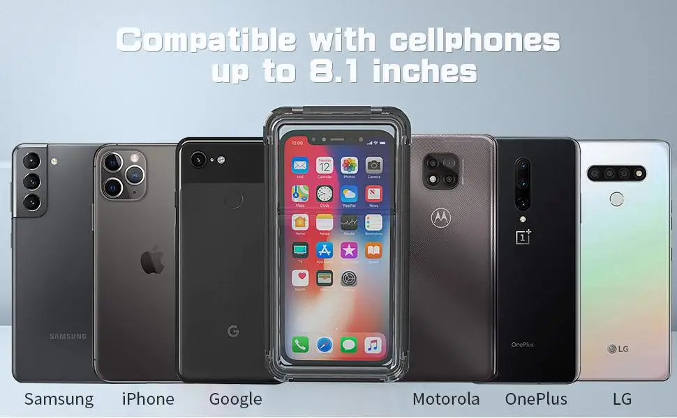 4. Поскольку смартфон представляет собой емкостный сенсорный экран, его нельзя трогать под водой, используйте клавишу громкости для съемки под водой.Особенность:Универсальный Водонепроницаемый Чехол для телефона: подходит для всех смартфонов до 8,1 дюймов (для Iphone, Samsung Galaxy, Moto, LG, Google Pixel, OnePlus, Xiaomi). Поставляется со шнурком для удобной переноскиУдобство: Этот водонепроницаемый чехол для телефона имеет кристально чистое окошко с обеих сторон, идеально подходит для фотосъемки и доступа к сенсорным экранам, не снимая Водонепроницаемость чехол для телефона. Вы можете идеально управлять своим мобильным телефоном, но не для сканирования отпечатков пальцевСертификат IP68: полностью погружной, герметичный и водонепроницаемый, этот подводный водонепроницаемый чехол для телефона предназначен для экстремальных условий, защищает ваш телефон от подводного до 20 футов, снегозащищенный и пыленепроницаемыйНеобходимость отпуска: Универсальный Водонепроницаемый Чехол для телефона, идеально подходит для плавания, Сноркелинга, пляжа, дайвинга, каякинга, катания на лодке, рыбалки, плавания, аквапарка и т. д. (советы: пожалуйста, проведите тест безопасности перед использованием водонепроницаемого чехол для телефона)Многофункциональный водонепроницаемый чехол для телефона: имеет простую защелку и доступ к блокировке. Вы также можете поместить ключи, кредитные карты, бумажник деньги в этот Универсальный Водонепроницаемый Чехол для телефонаПосылка1 * Водонепроницаемый Чехол(Или с браслетом, пожалуйста, выберите то, что вам нужно)