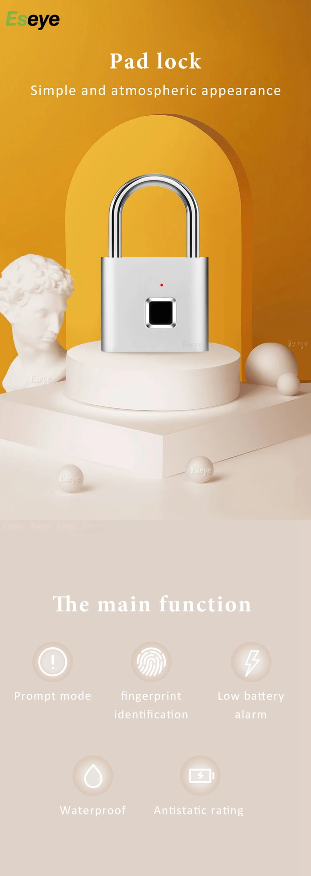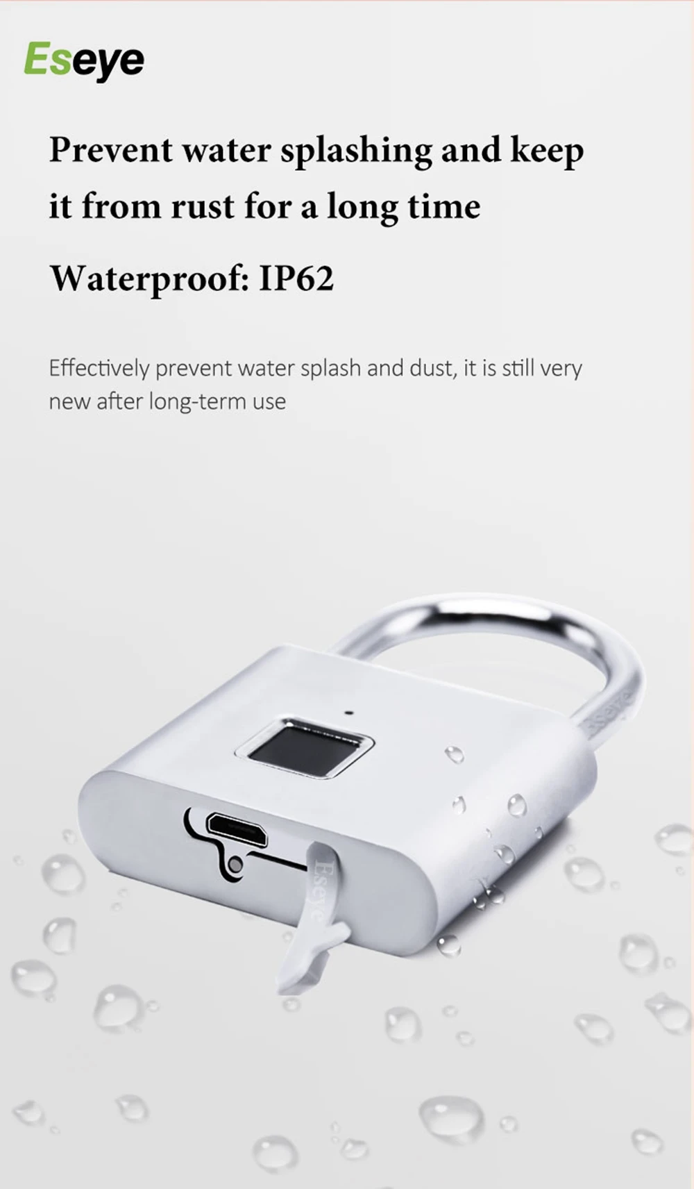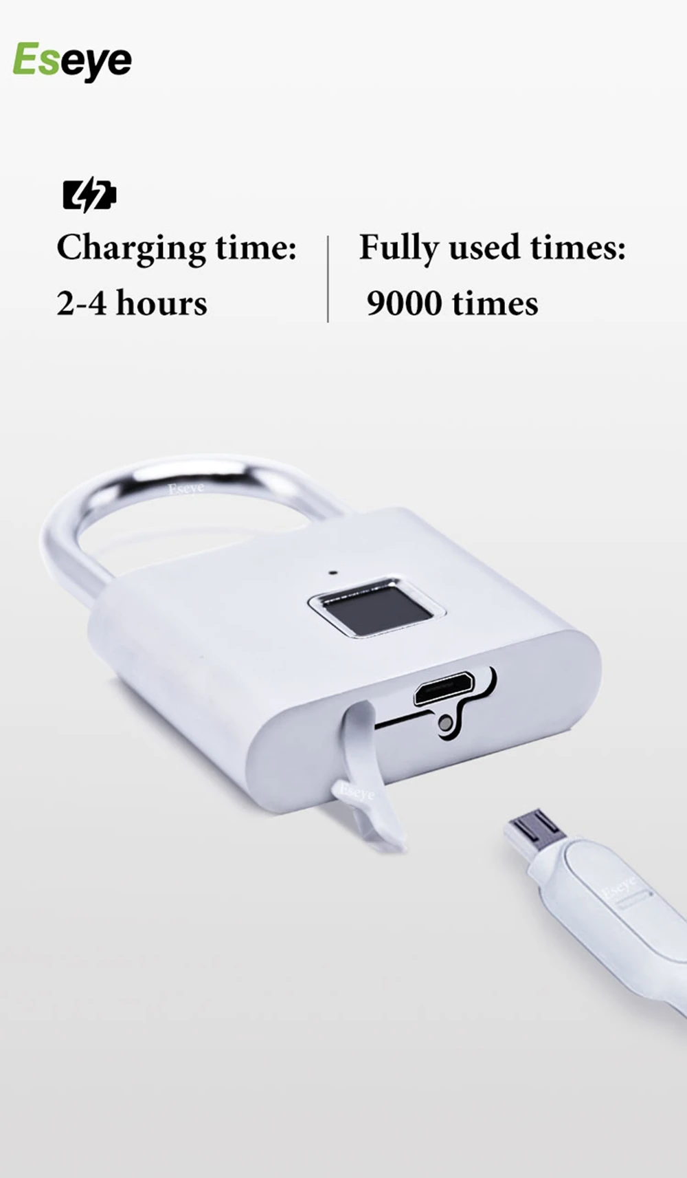 Eseye замок без ключа с USB-зарядкой, умный замок с отпечатком пальца, дверной замок с разблокировкой 0,1 сек, портативный Противоугонный металлический замок из цинкового сплава