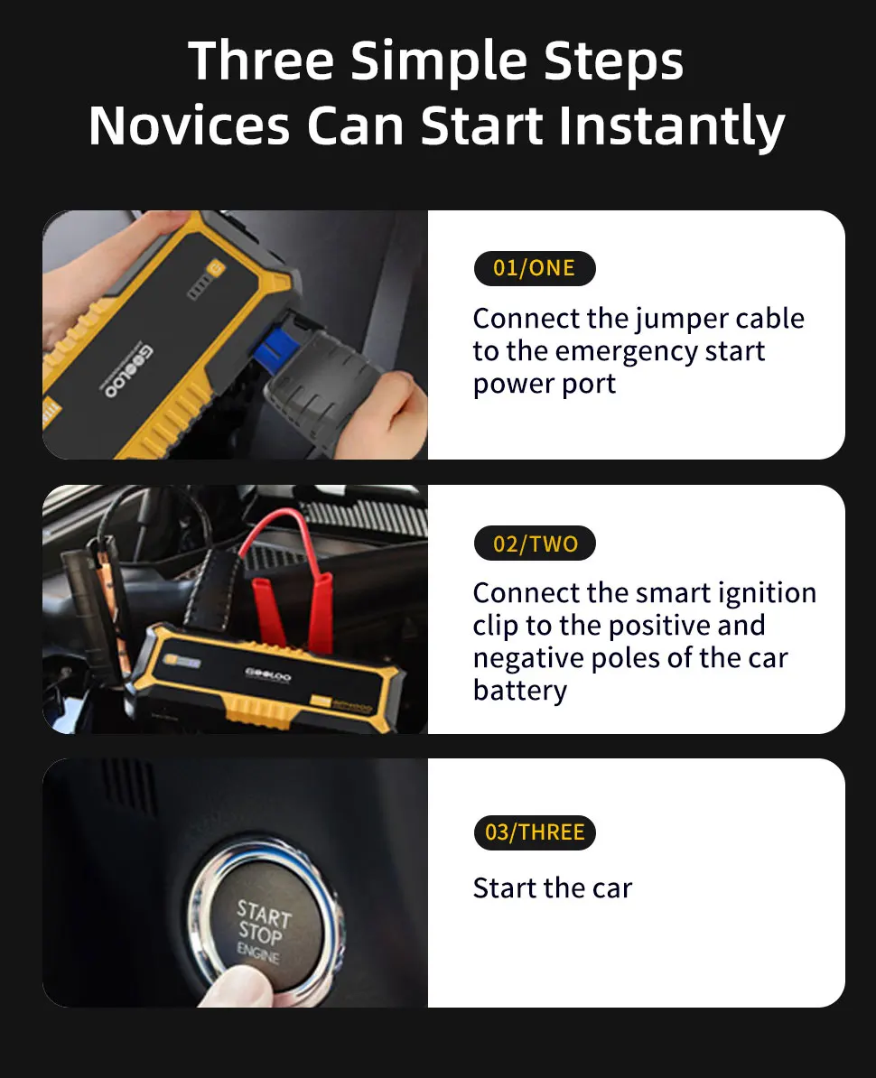 Первый в мире стартер с пиковым током 4000A, независимо от того, какой тип автомобиля вы, вы можете начать мгновенно.