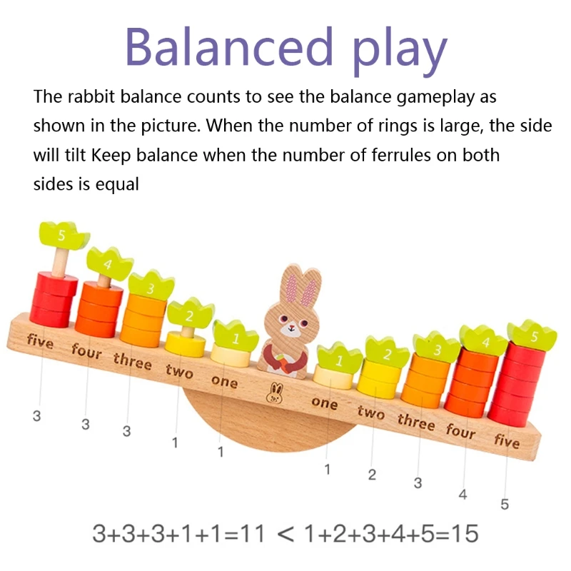 Обучающие игрушки с хорошим количеством, яркие цвета, привлекают внимание ребенка, помогают ребенку получать удовольствие от обучения. Игра с цифровым балансом, милое забавное моделирование, будет любима ребенком. Этот продукт может эффективно сопровождать детей и увеличивать взаимодействие родителей и детей. Высококачественная древесина с закругленными краями и окрашенная в безопасную для детей краску на водной основе. Посылка включает в себя: Баланс-1 шт. 1 X модель кролика 10х карт 1 основание