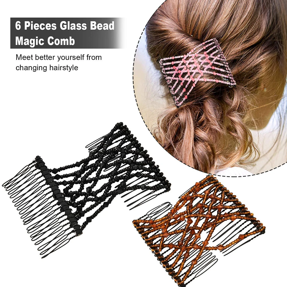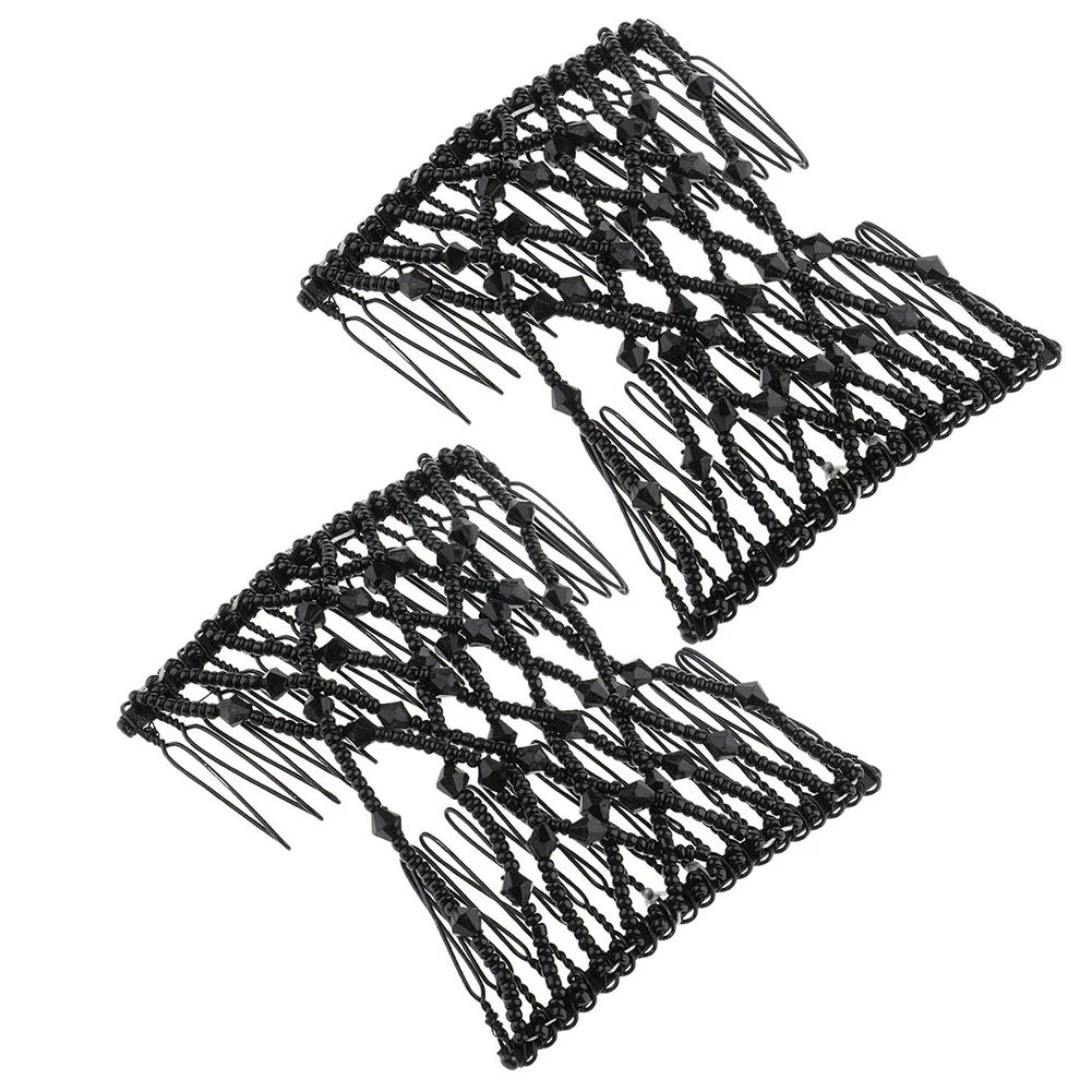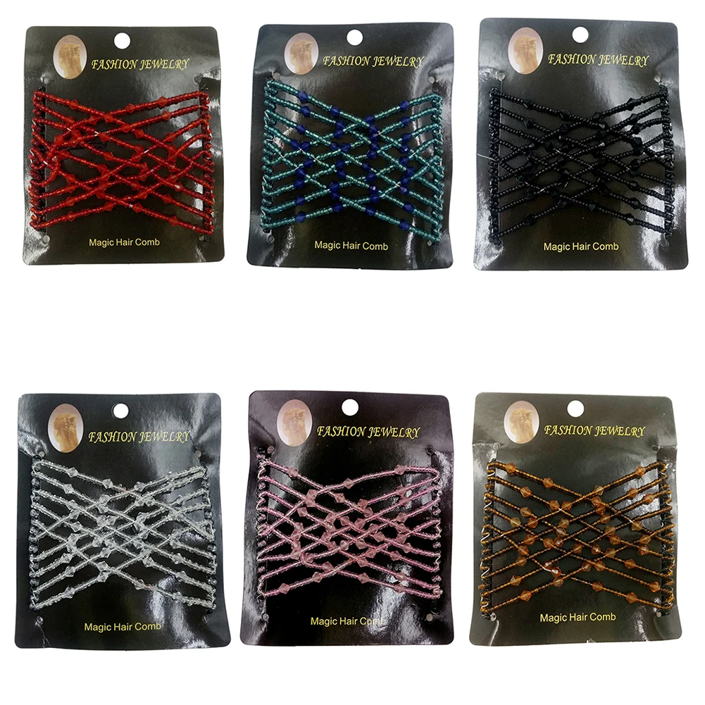 Женская эластичная шпилька из бисера, эластичная ручная работа, двойной зажим для волос, расческа, аксессуар для укладки для женщин и девочек