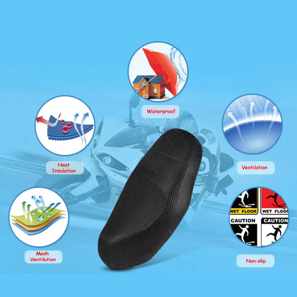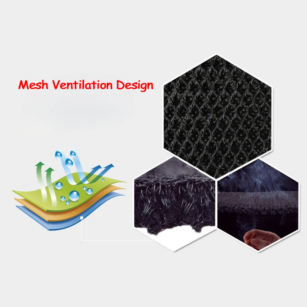 Сетчатая вентиляционная конструкция. Высокая водонепроницаемость, защищая ваше сиденье от воды в дождливые дни. Термостойкий, дышащий, влагостойкий, плесень, эластичность. Легкость давления внимательная, приносит практическое внимательное чувство. Не скользит, избегая несчастных случаев. Легко мыть: используйте мягкое нейтральное моющее средство мягко краску, затем протрите краску водой, поместите в прохладное вентилируемое место, чтобы высушить после стирки.
