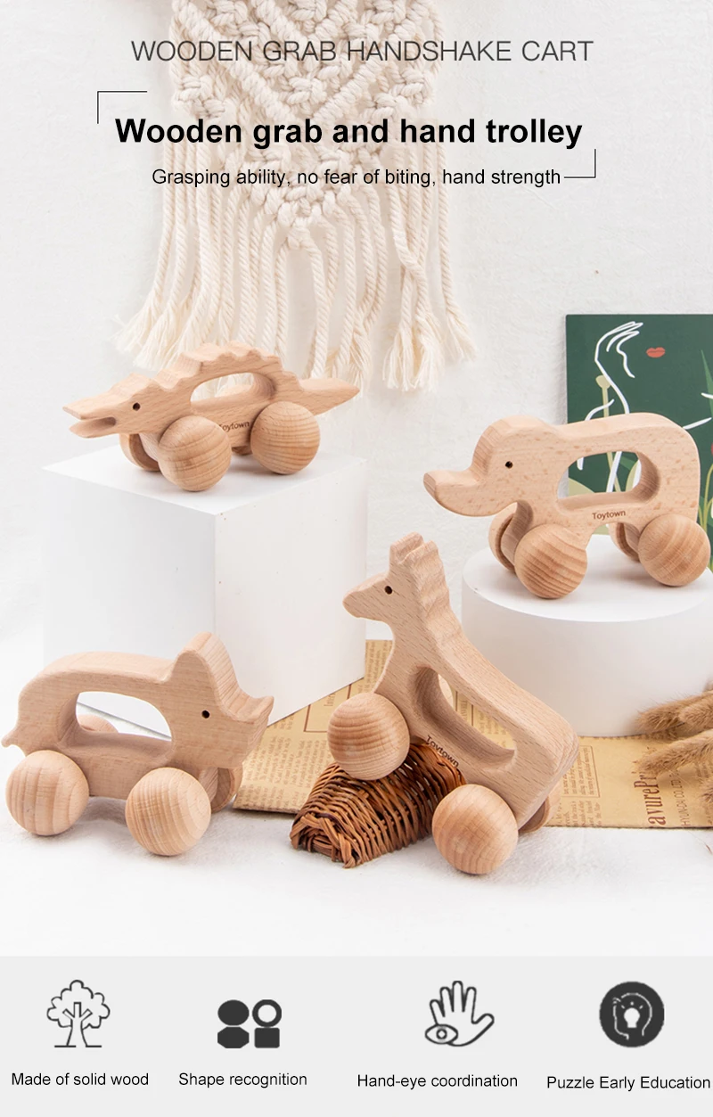 WEMMICKS деревянные игрушки для детей, ручная встряхивательная коляска с захватом животных, детские ручки, Обучающие ходунки для малышей, детские дорожные игрушки, подарки