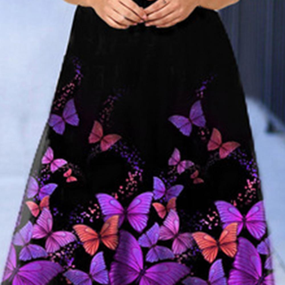 Благодаря дизайну фиолетовых бабочек это платье с короткими рукавами Очень привлекательное, красивое и стильное. И дизайн с открытыми плечами делает вас слегка сексуальным.