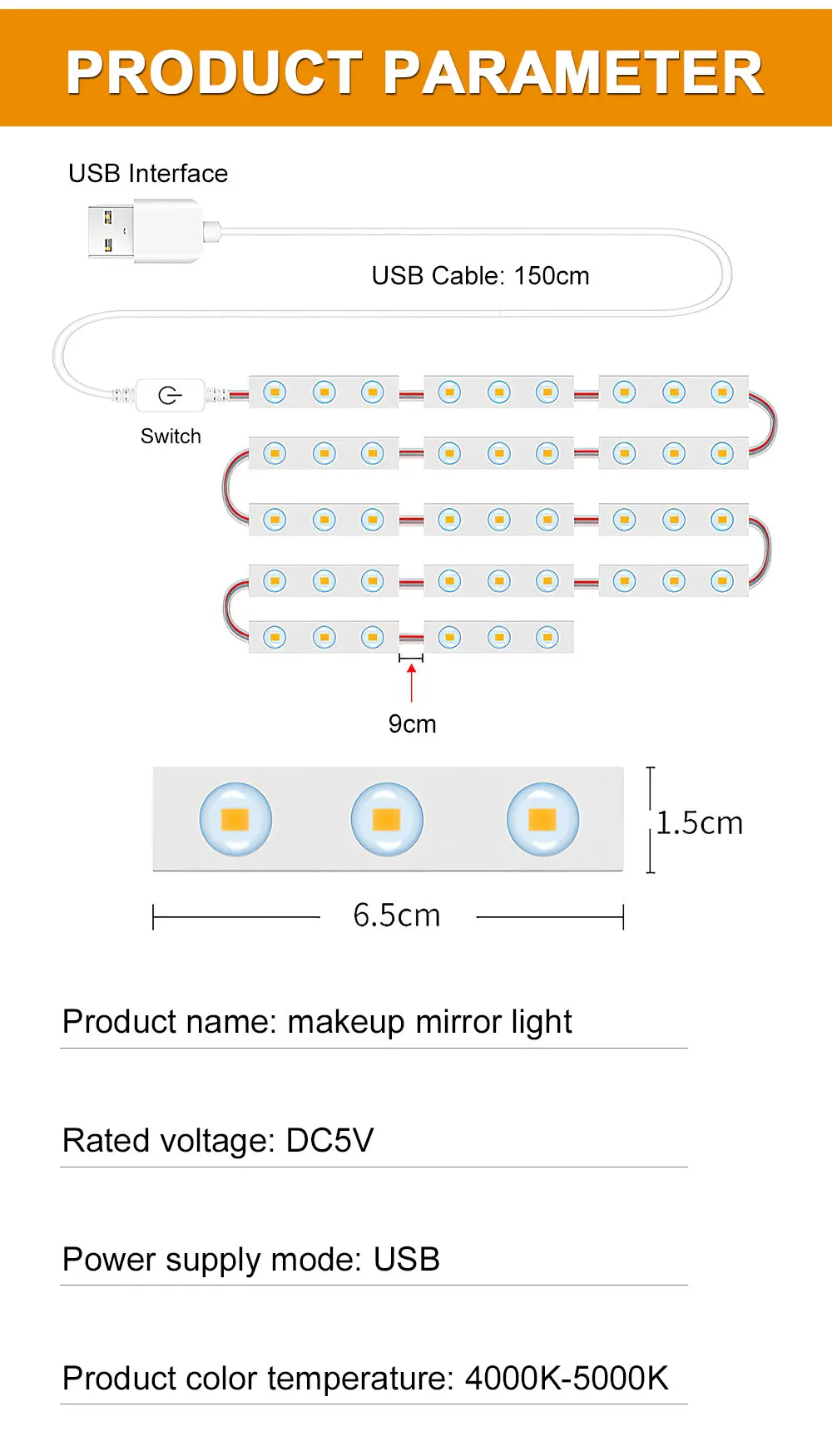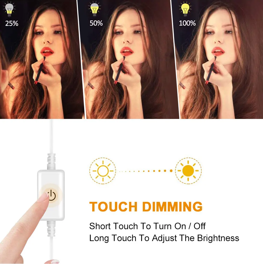 Приходят с умная панель регулировки яркости подсветки, коснитесь, чтобы отрегулировать яркость и выключите по вашему желанию. Идеально подходит, доступная подсветка зеркала стены можно использовать на каждый день, в то время как нанесение макияжа, принимая фотографии цветного защитного покрытия на макияж, И даже Запись по макияжу