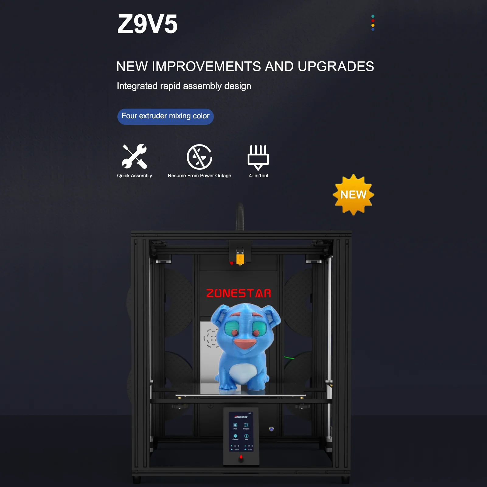 【 Многоцветные Printing】Принтера 4 экструдер модулей и 4-в-1-out подключения печатающей головки обеспечивают 4 видов спандекса -- один цвет, двойной цвет, четыре цвета и смешивать цвета, что значительно обогатит ваш опыт 3D печати. Однокнопочный режим переключения делает Монохромное преобразование в многоцветный проще.
