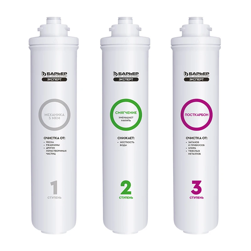 Сменные картриджи для фильтров «Экспертная жесткость» способны удалить из состава твердой воды все основные вредные примеси, присутствующие в нем. Фильтрующие элементы должны использоваться только в системах холодной воды. Подходит для всех фильтров линейного барьера.