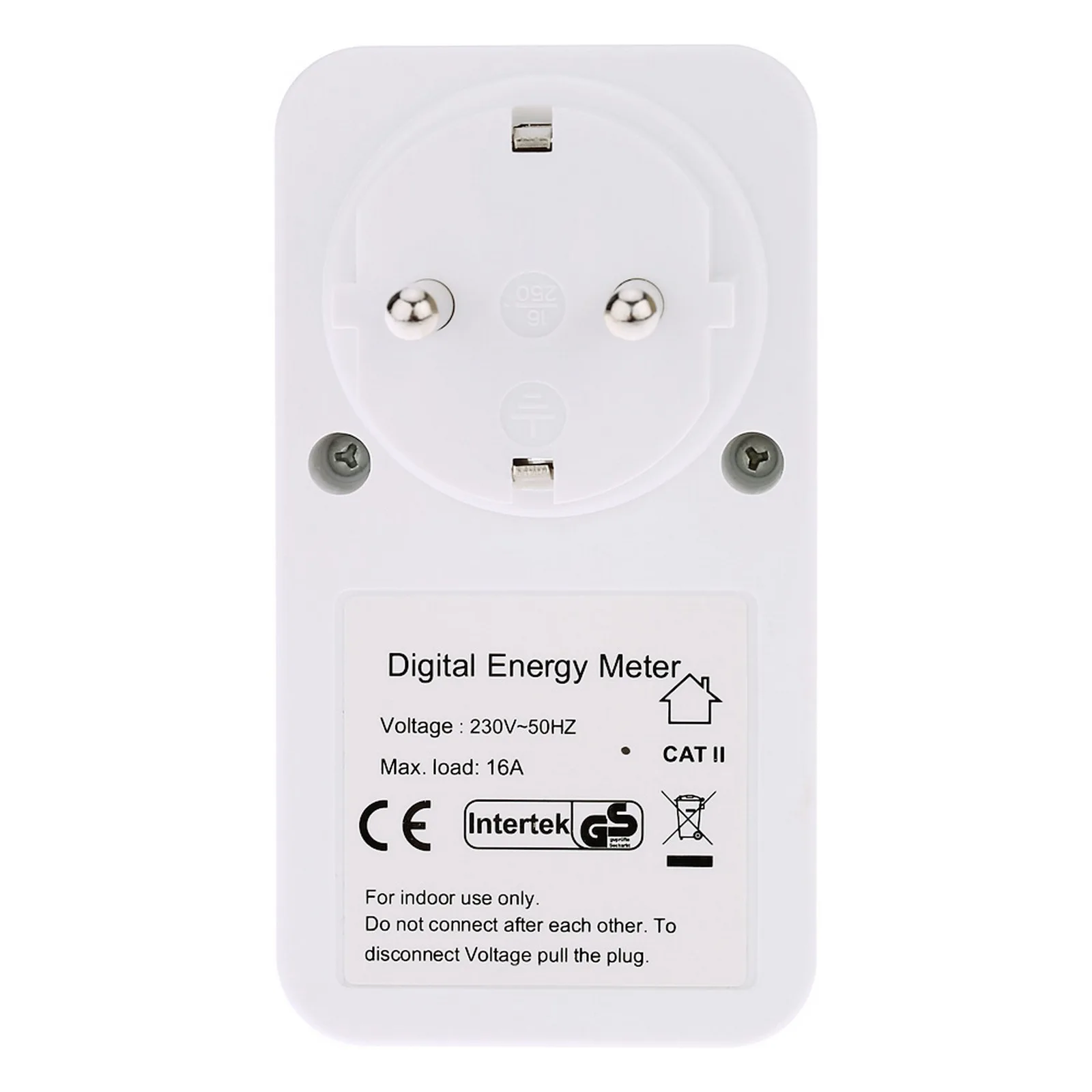Не подключайте устройство, в котором нагрузка превышает 16 ампер. Всегда убедитесь, что штепсельная вилка любого прибора полностью вставлена в розетку счетчика. Если требуется очистка счетчика, извлеките из сети и протрите счетчик сухой тканью.