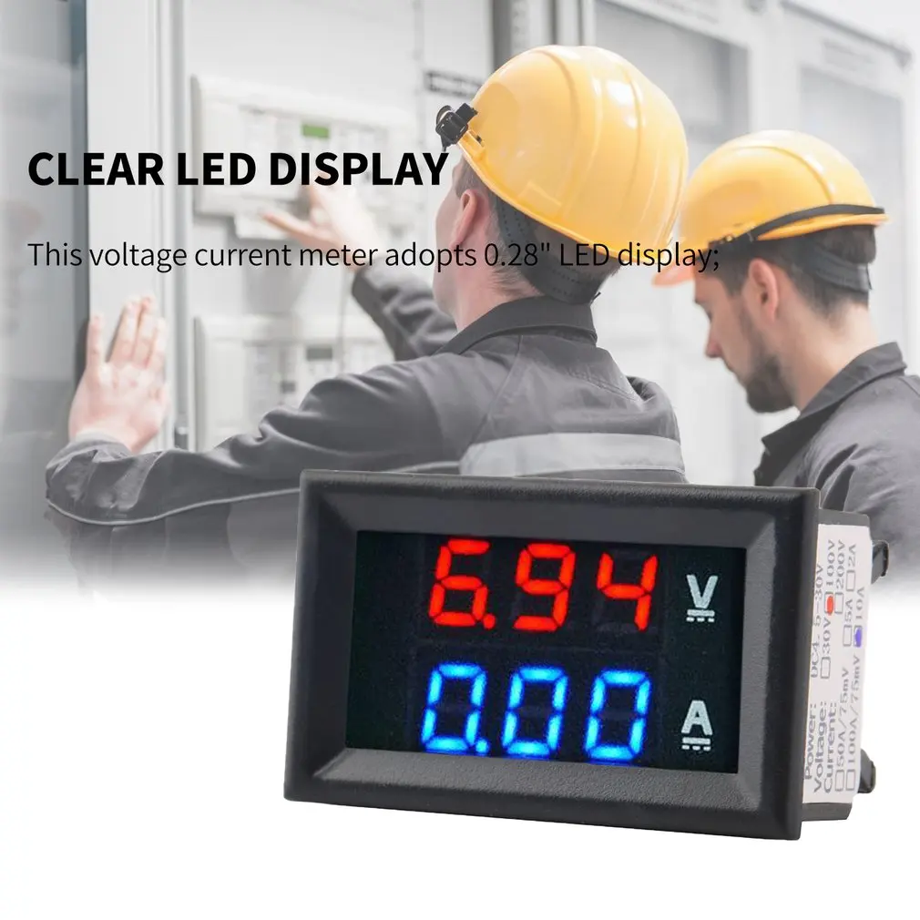 Цифровой светодиодный вольтметр Амперметр постоянного тока 100 в 10 А синий + красный двойной цветной дисплей Вольтметр измерительный усилитель двойной мультиметр напряжения тока