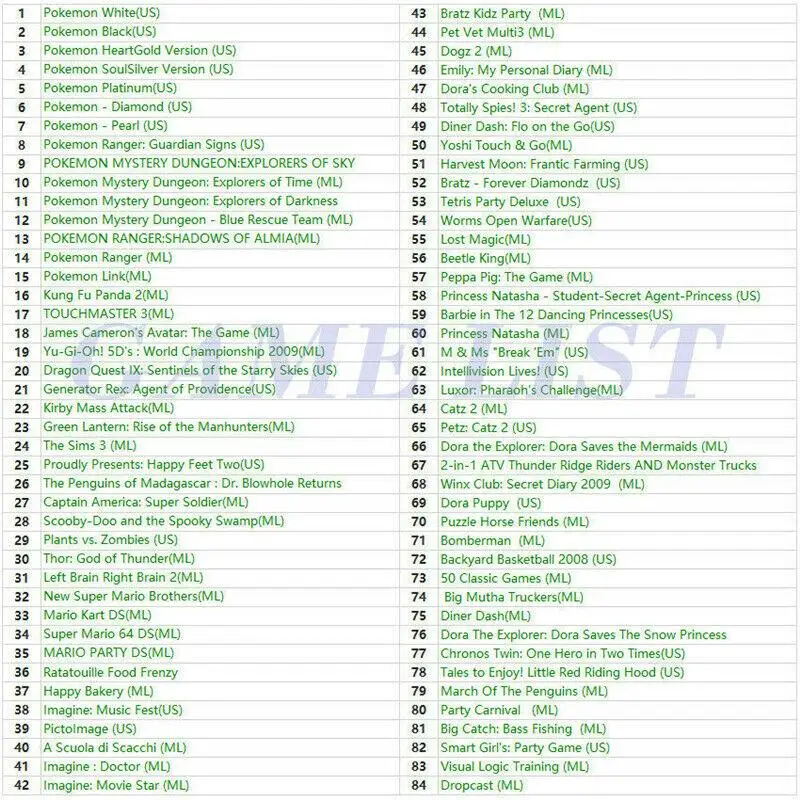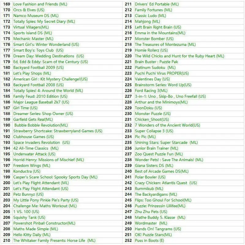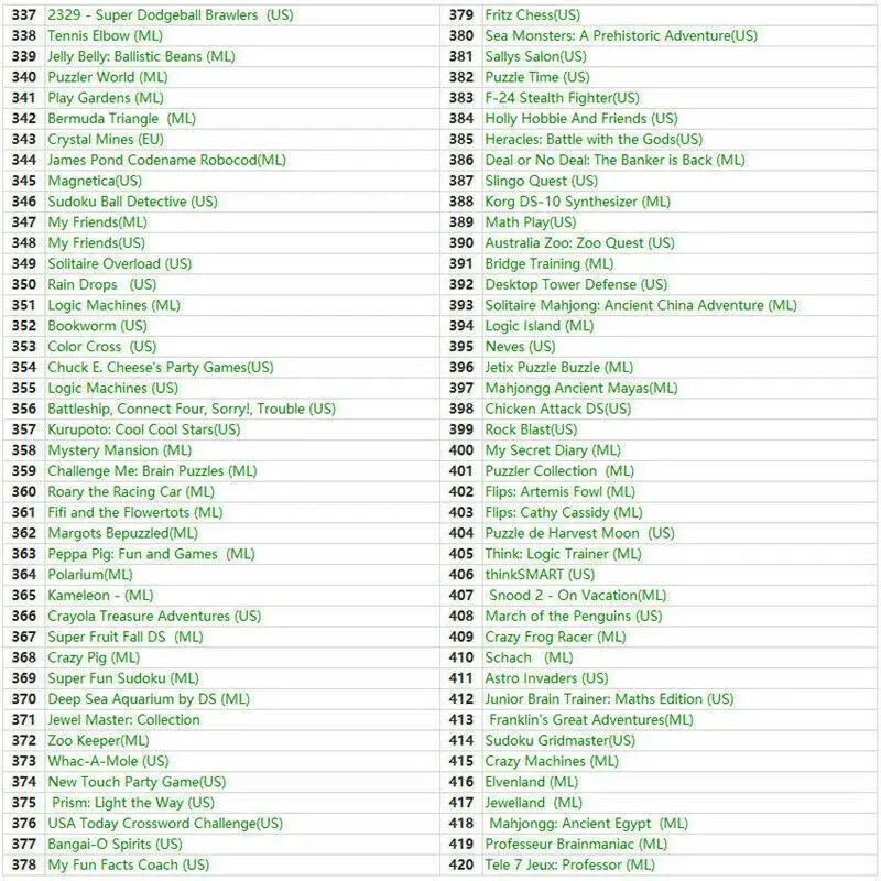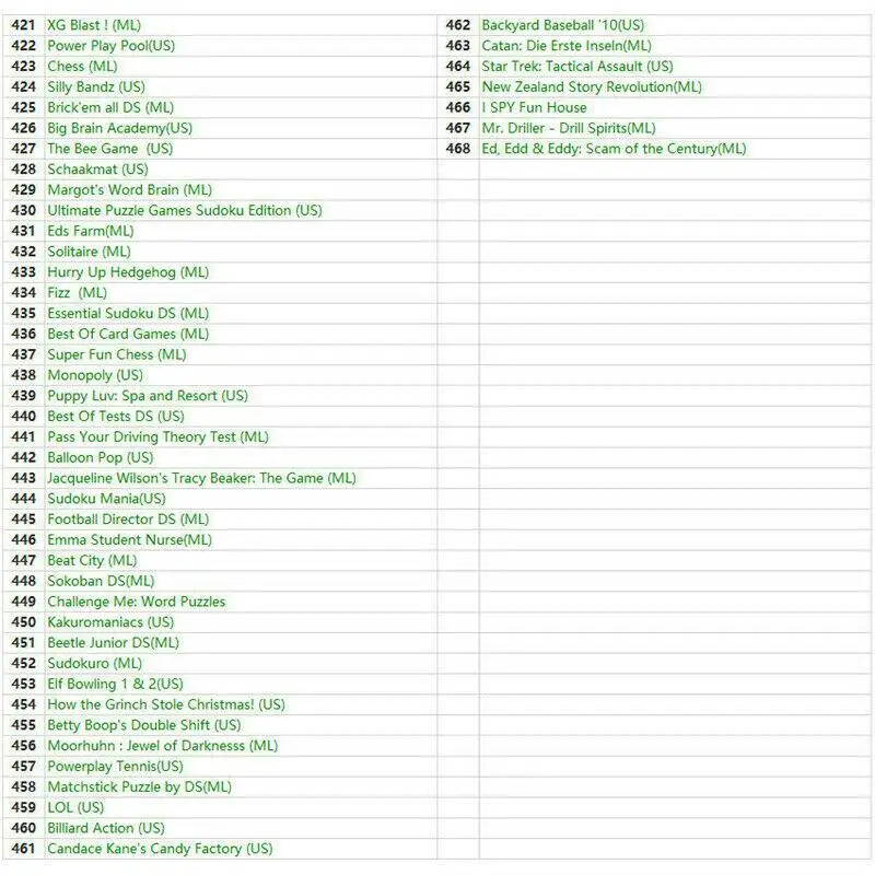 Компиляция видеоигр 468 в 1 для консоли DS/3DS/2DS, поддержка консоли ниже 11,4 DS, кроме консоли 2DS, требуется версия ниже 10,0