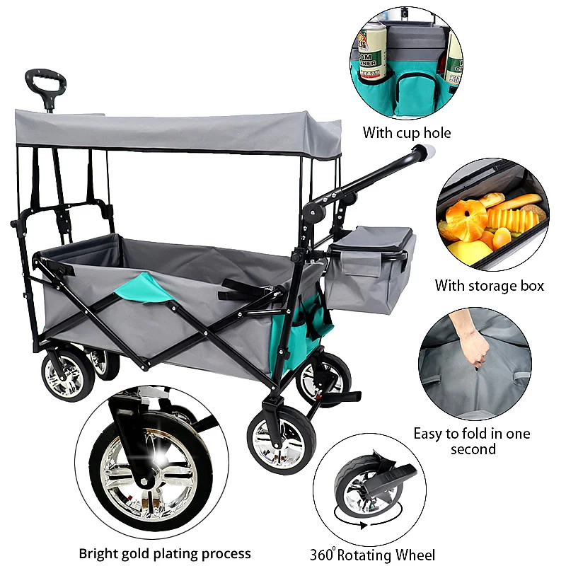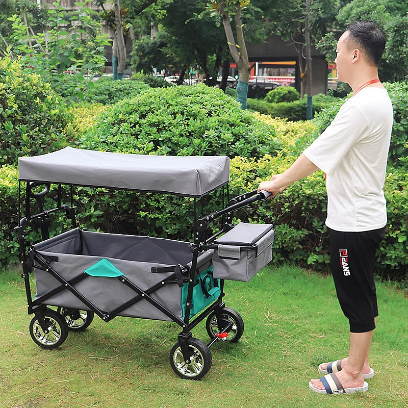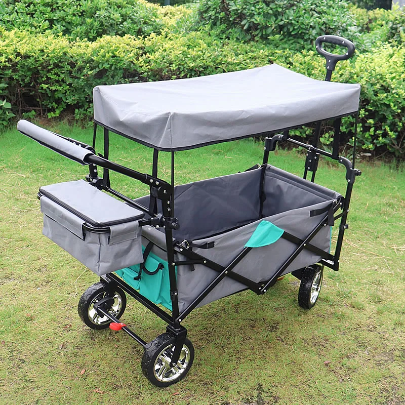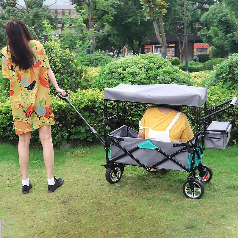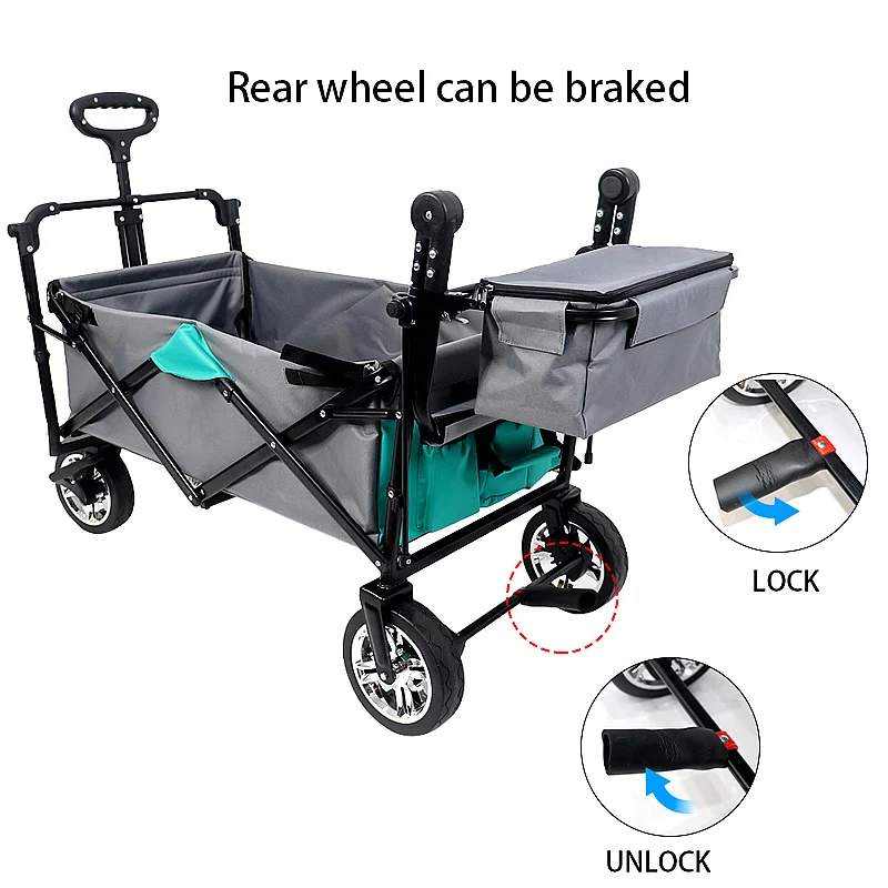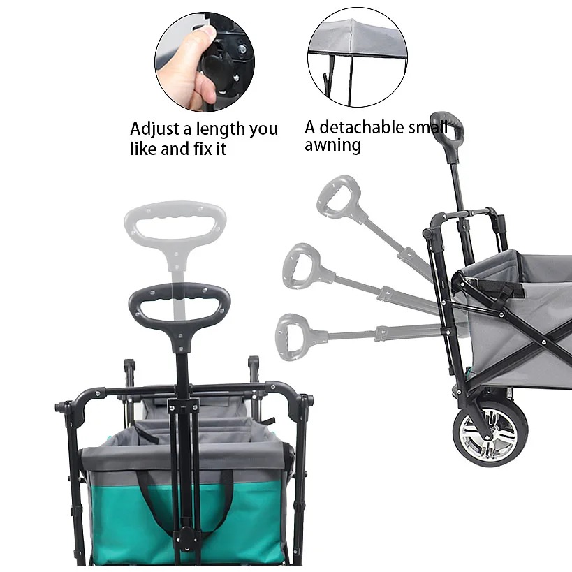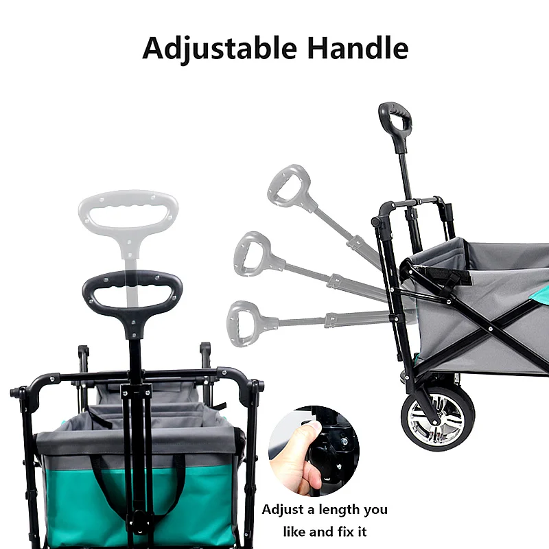 Нажмите или Потяните:Телескопическая Тяговая ручка и регулируемая нажимная ручка на ваш выбор. Идеально подходит для использования в вашем саду, на семейных походах или в качестве тележки и отлично подходит для поездок на пляж, кемпинга, спортивных мероприятий на открытом воздухе, И в любых других случаях, вы считаете это подходящим.