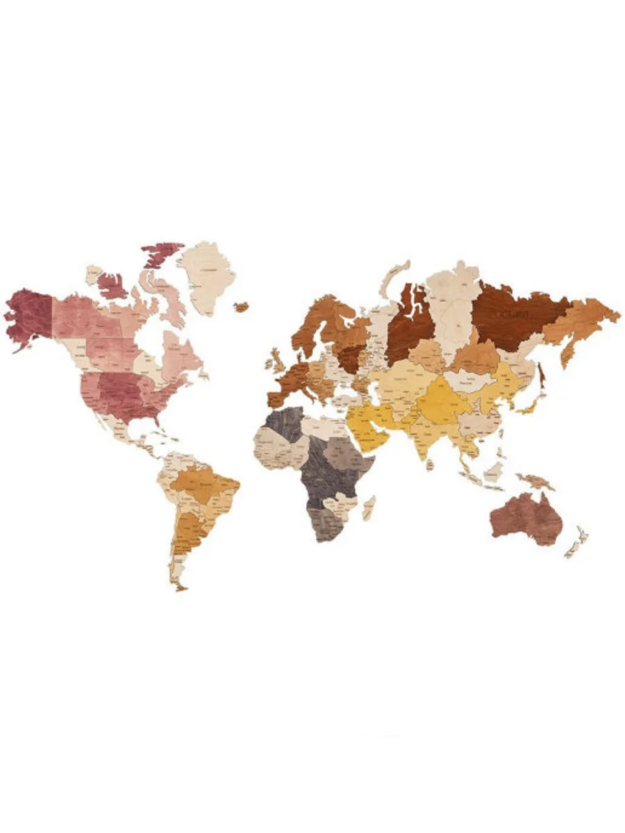 Карта мира из дерева нашего производства, изготовлена из березовой фанеры 4 мм. Надежно упакована и имеет максимальную детализацию. Континенты стран разрезаны на сегменты, получается что то вроде пазла. Карта надежно крепится к стене на двухсторонний скотч или термоклей, они не идут в комплекте. Так же, вы можете заказать в нашем магазине подложку для карты с дистанционным креплением к стене. Подложка упростит монтаж карты и придаст визуальный обьем. Интерьерная карта мира из дерева послужит прекрасным подарком для друзей, родственников и коллег по работе. Замечательным пособием для изучения стран и городов мира.
