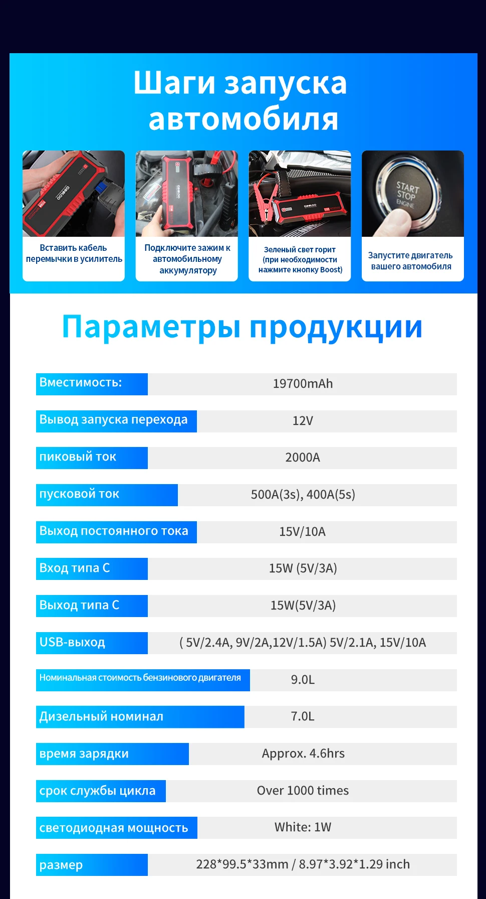 С пиковым током до 2000 А, мощность сильна, и автомобиль может начать мгновенно даже в состоянии потери энергии.
