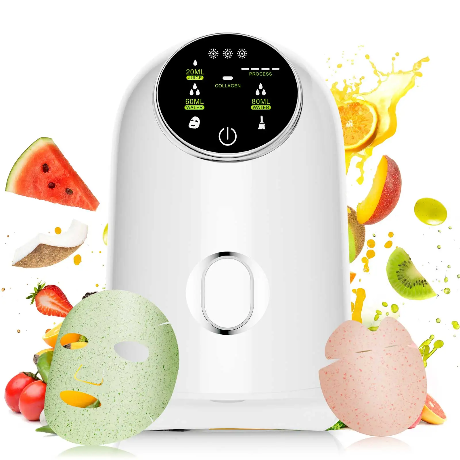 Обратите внимание, что продукт не включает функцию сжатия сока, пожалуйста, подготовьте 20 мл сока перед изготовлением маски и Смешайте сок с водой пропорционально в соответствии с инструкцией.