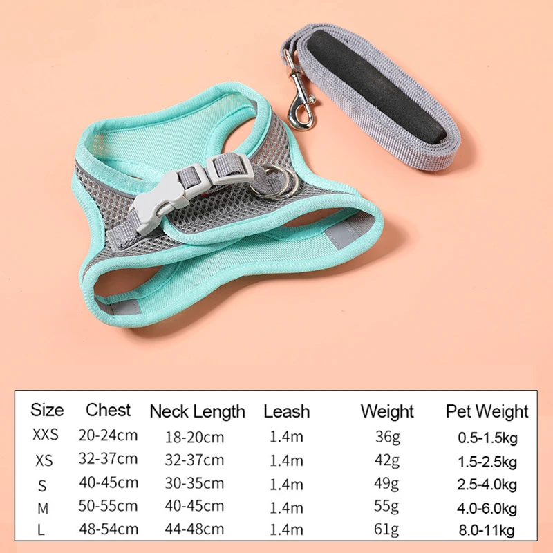 Собачья шлейка с поводком для домашних животных Регулируемый светоотражающий жилет Воздухопроницаемый жгут ошейники для маленьких средних собак кошачий поводок для прогулок
