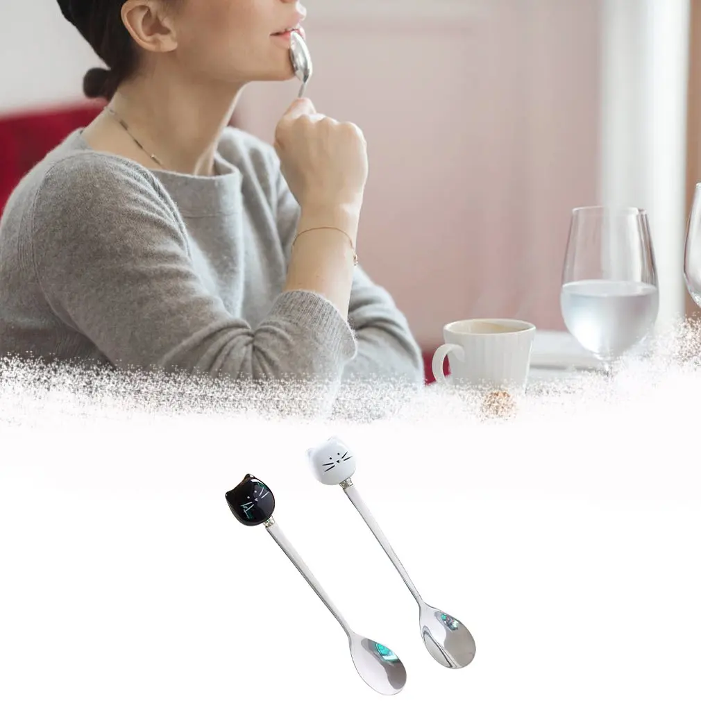 2 шт., Мультяшные ложки для пирожных с кошкой, керамическая ручка, нержавеющая сталь, кухонные столовые приборы кофейная ложка, ложка для смешивания молока, домашние Принадлежности для кафе