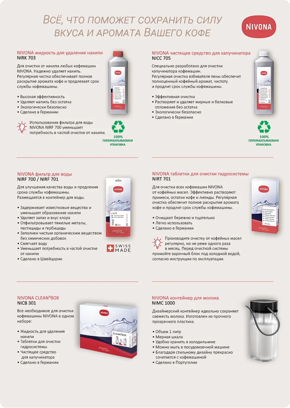 Таблетки для чистки, молочная трубка и сервировочная ложка