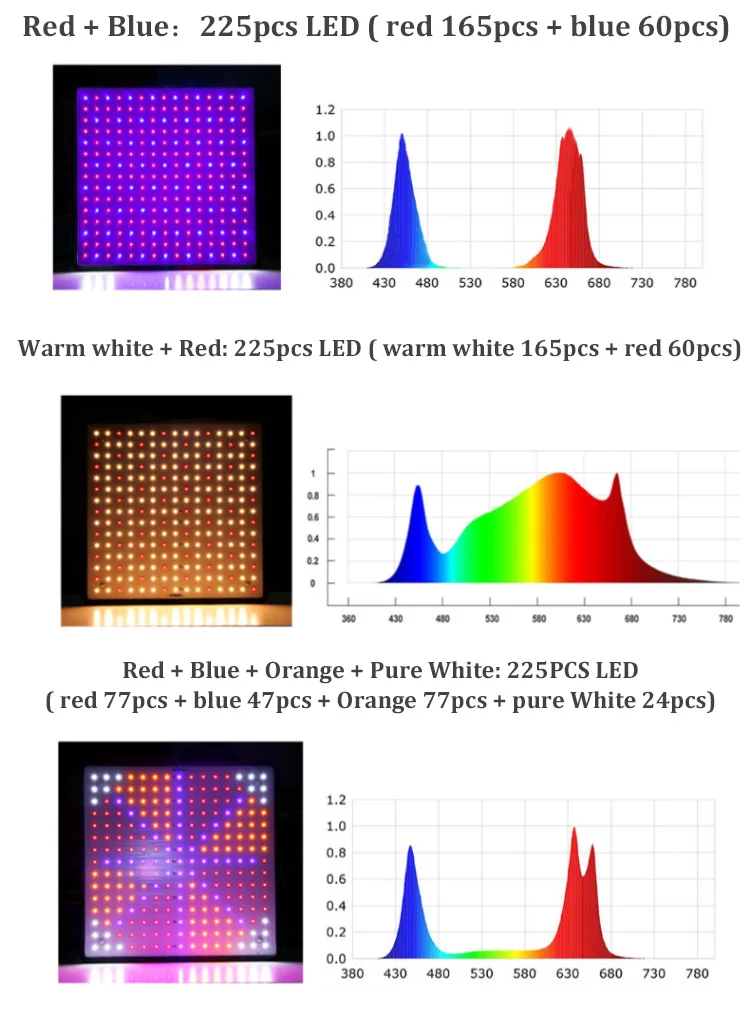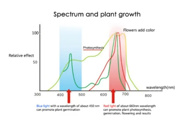 Красный светильник (660нм):Дает больше листьев и культур в сочетании с синий светильник