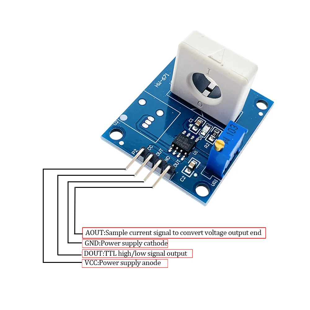 Шаг 3: в будущем, когда ток обнаруженной клеммы превышает 1 А, красный светодиодный не светильник, и модуль DOUT в это время выводит высокий уровень.