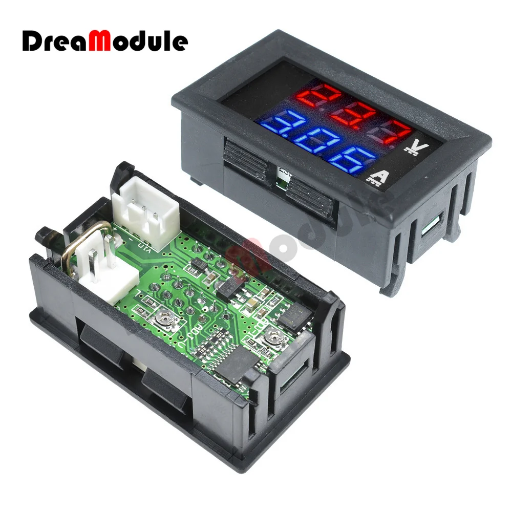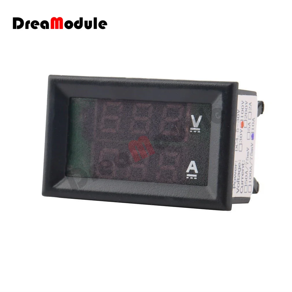 Цифровой мини-вольтметр, амперметр, 3 Бит, 5 проводов, постоянный ток, 10 А, 100 дюйма, измеритель напряжения, тестер, синий, красный, двойной светодиодный дисплей